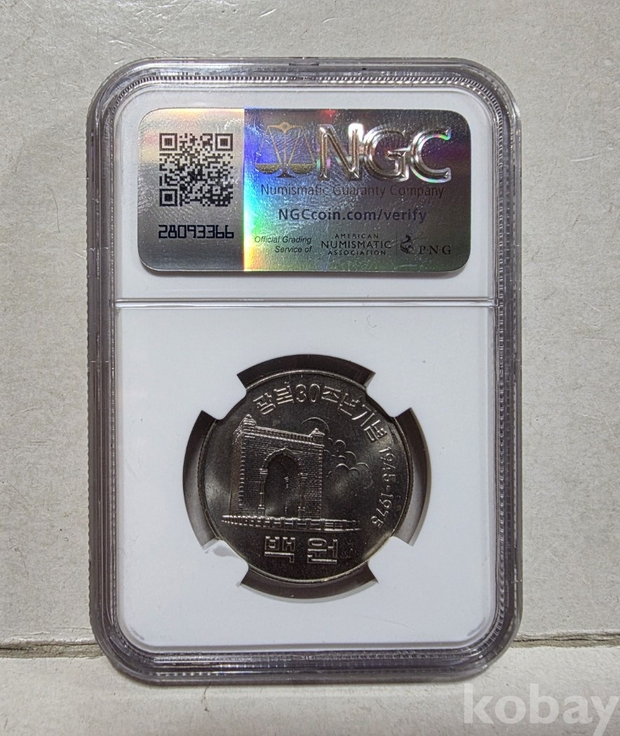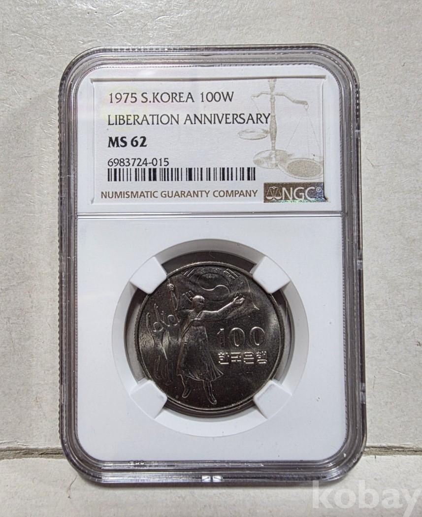 -대한민국 1975년 광복 30주년 기념 100원 NGC62 등급 입니다.
