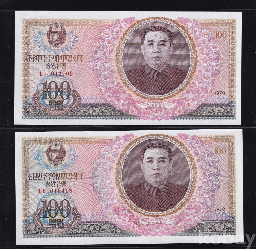 - 윗동네 1978년 백원 통용권 미사용 지폐 - 2장 일괄