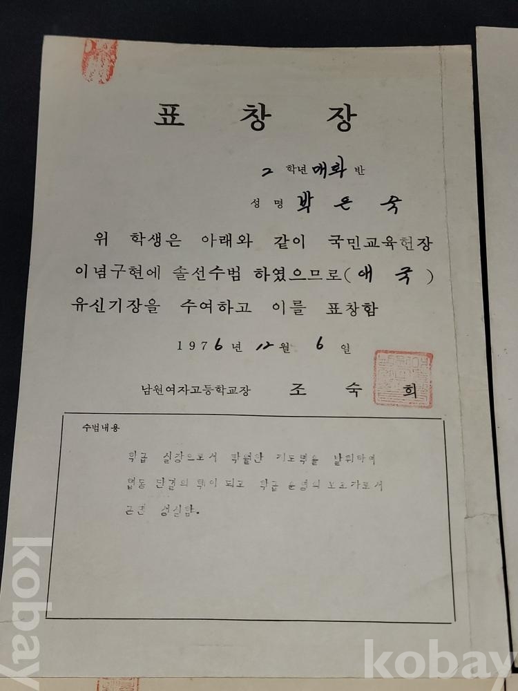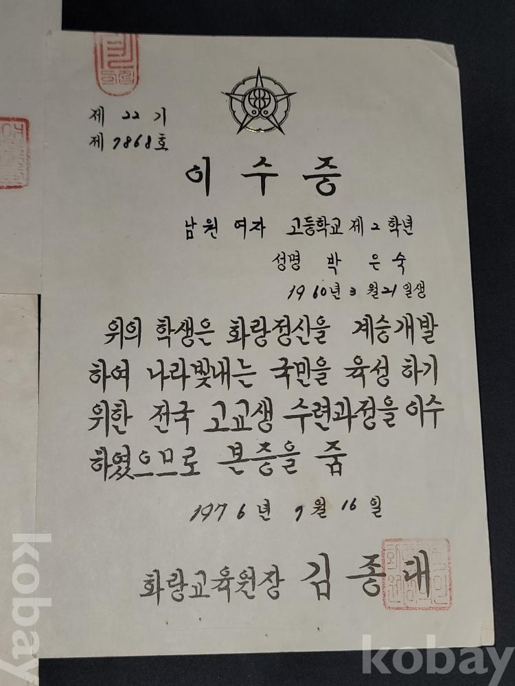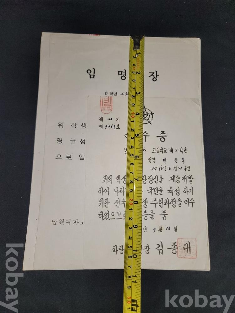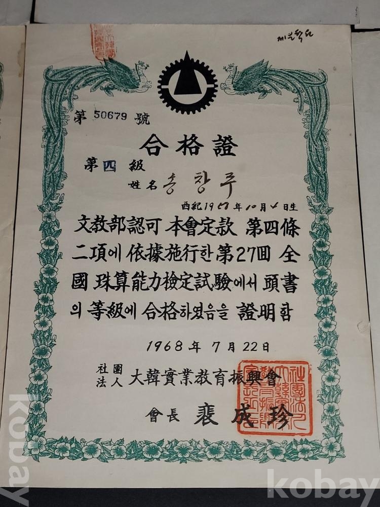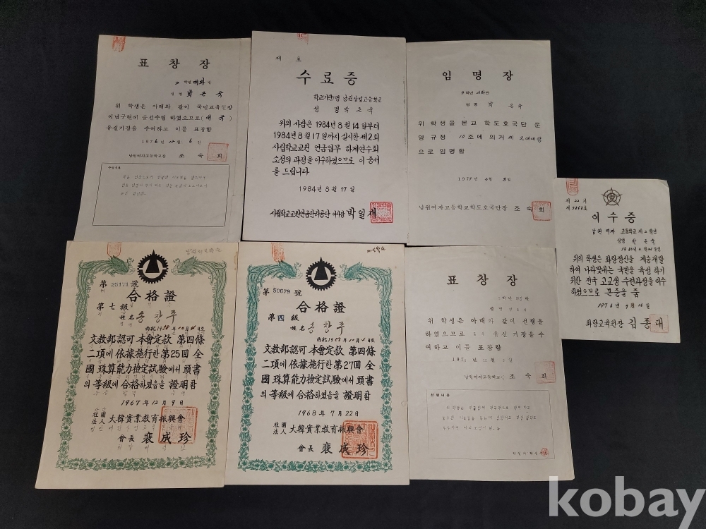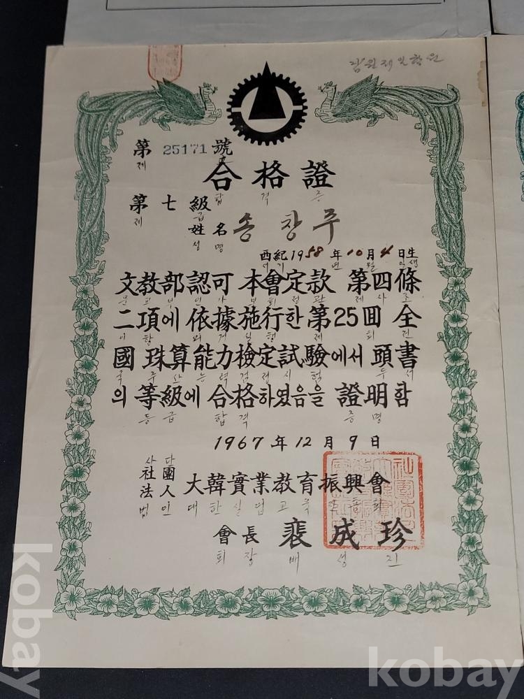 빈티지 세월 감이 느껴지는 희귀한 1967년, 1968년, 1875년, 1976년, 1977년, 1984년, 1976년 합격증, 표창장, 이수증 등 각종 상장 7장 일괄입니다.