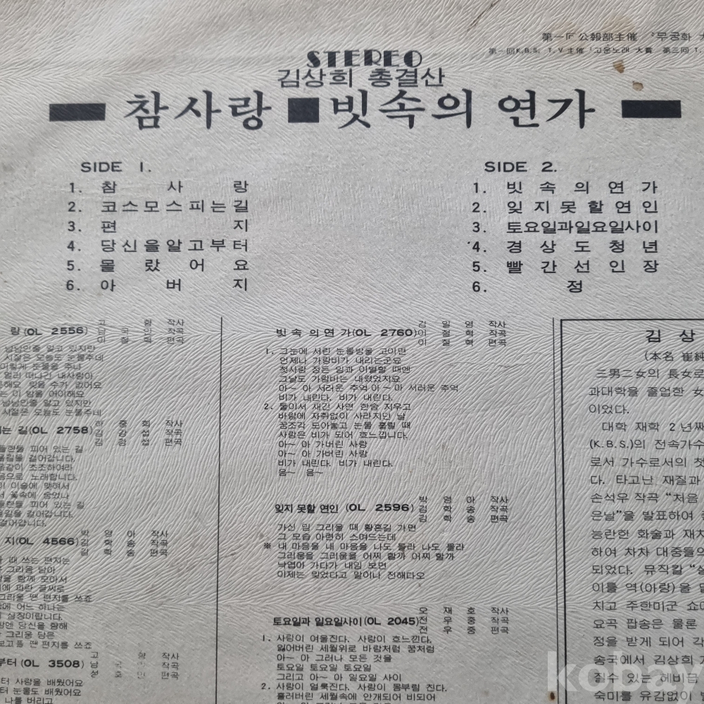 (희귀반) 김상희 총결산 엠보싱자켓 오아시스레코드