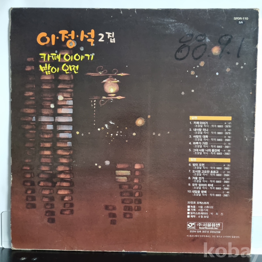이정석 2집 [카페 이야기, 밤이 오면] 서울음반