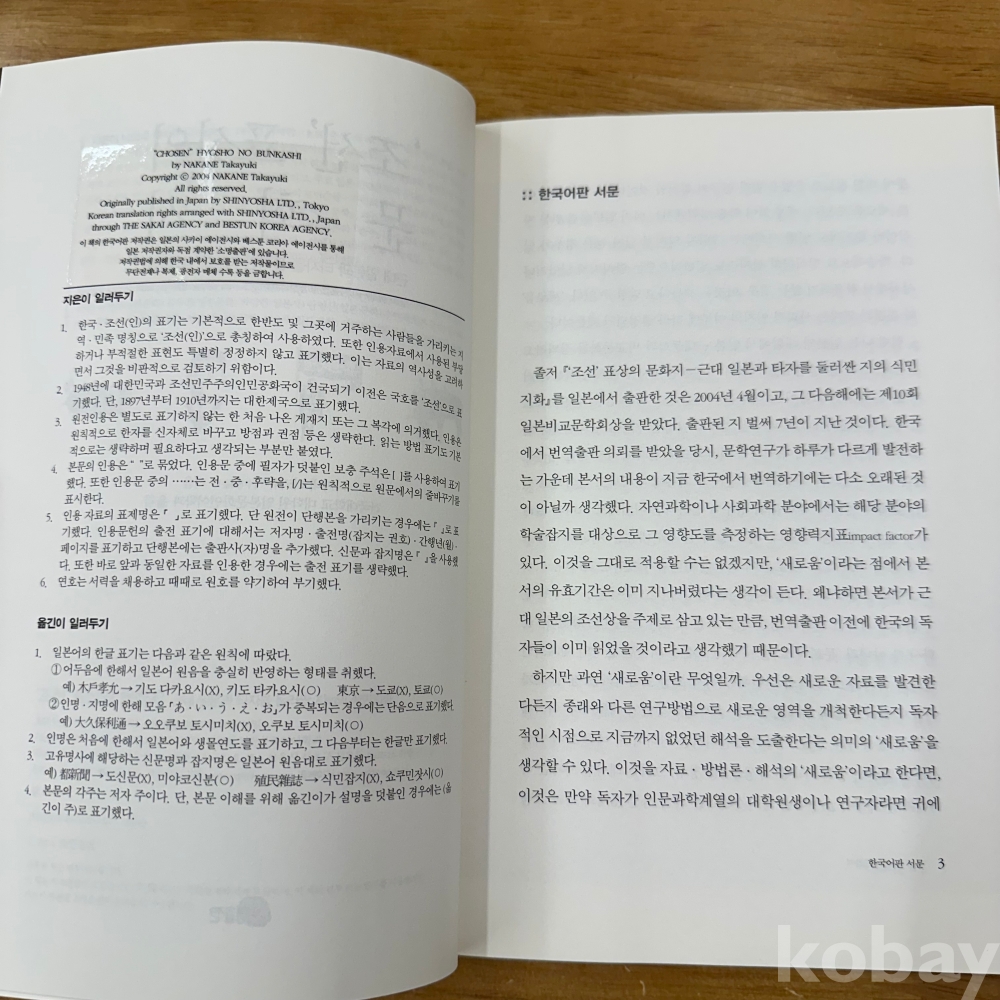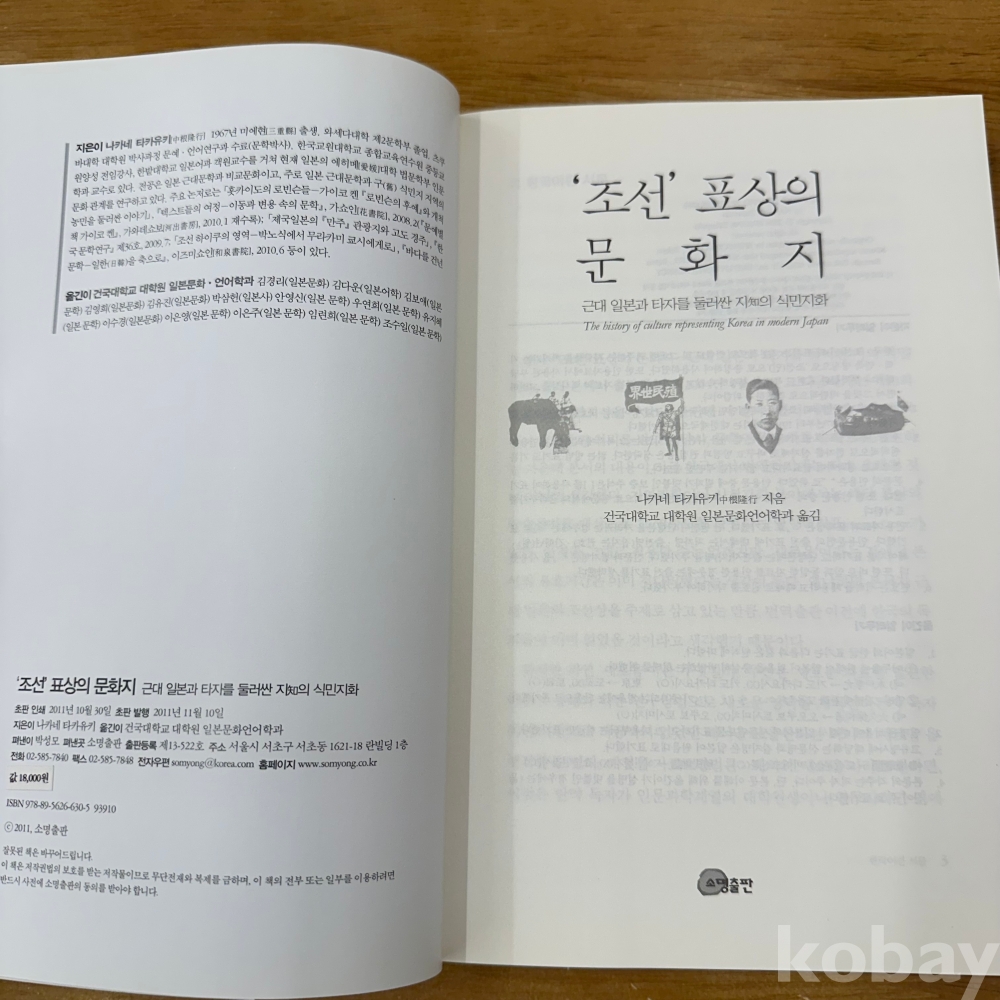 [일제강점기, 한일관계] 나카네 타카유키, 건국대 대학원 일본문화 언어학과 옮김, <조선 표상의 문화지>, 소명출판, 2011. P.373, 상태 중상급(사진참조)