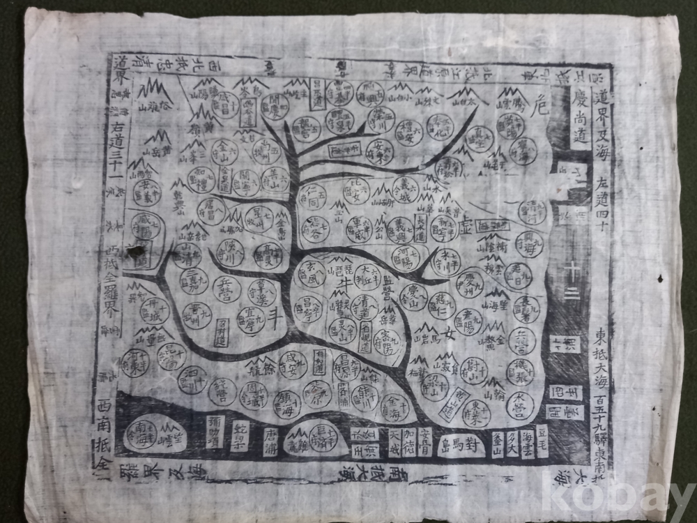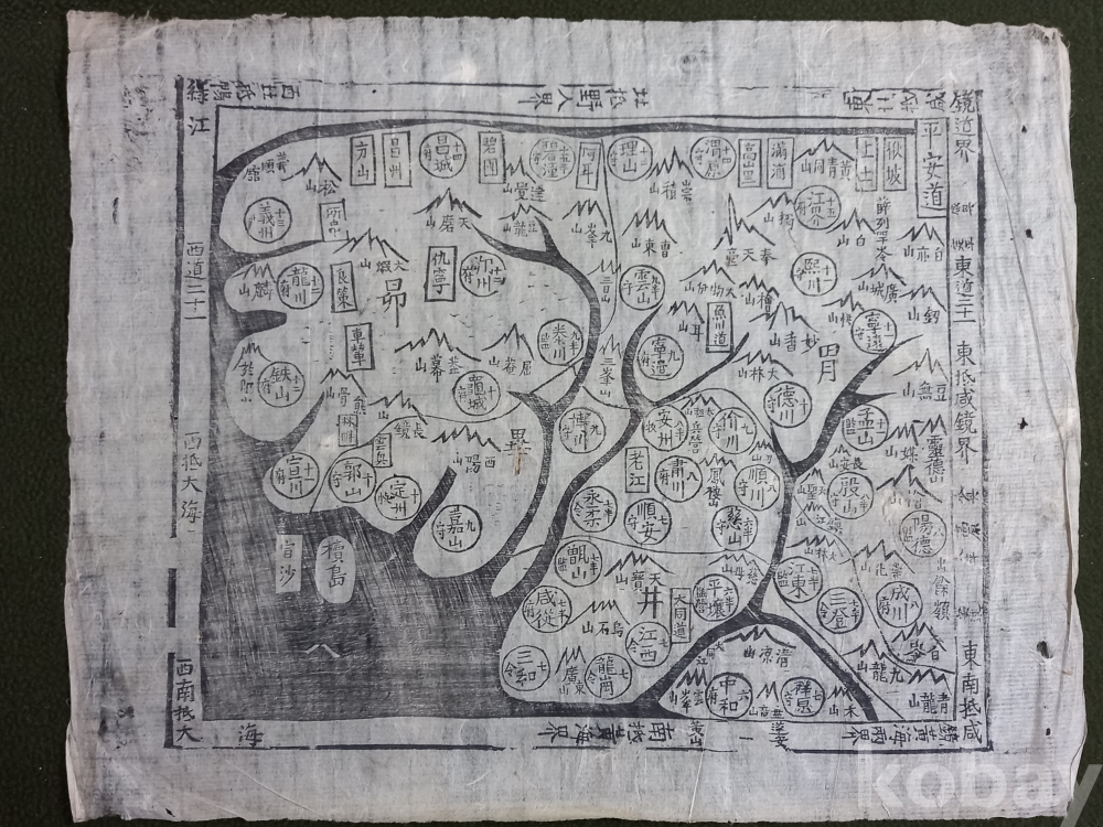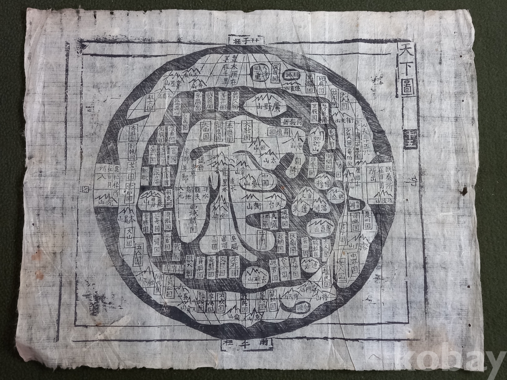 기존에 현존하는 다른물품과 비교하면 지명 글씨 배열이 조금 다른 부분이 있는것 같고 천하도 의 모양또한 기존물품과 조금 다른 모습을