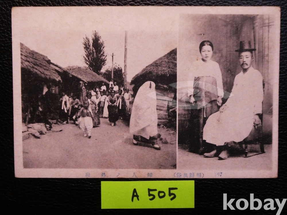 ▣근대한국엽서(진본): [조선풍경] 조선인 부인의 외출과 조선인 아버지와 딸/1매/역사자료/일제강점기 사진엽서, 그림엽서, 회엽서. A505, 사용실체.
