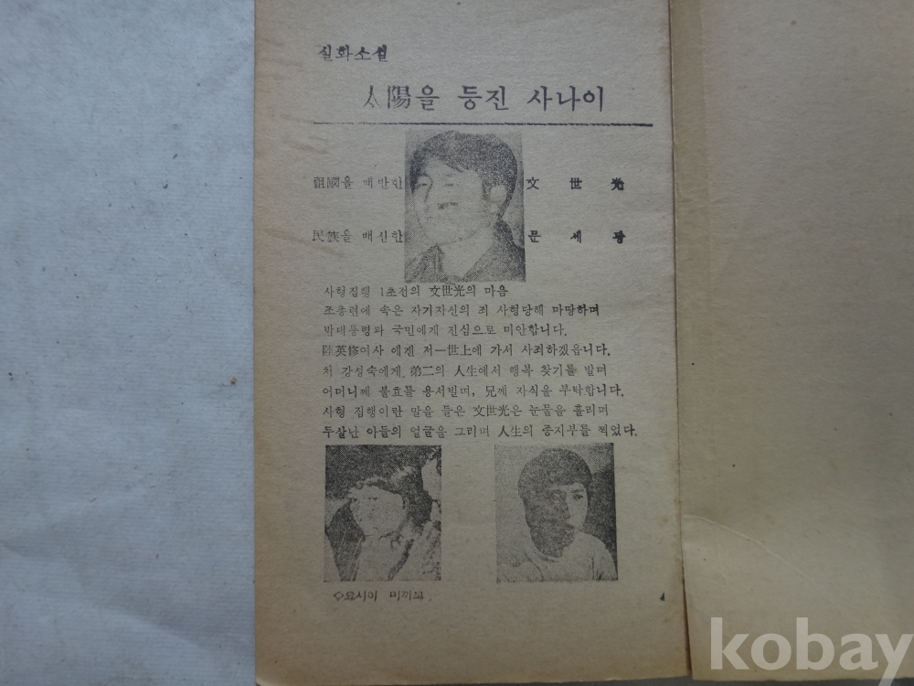 (실화소설) 태양을 등진 사나이 - 아세아 깽 살인사건 (1974년, 김재기 저, 태양상사)