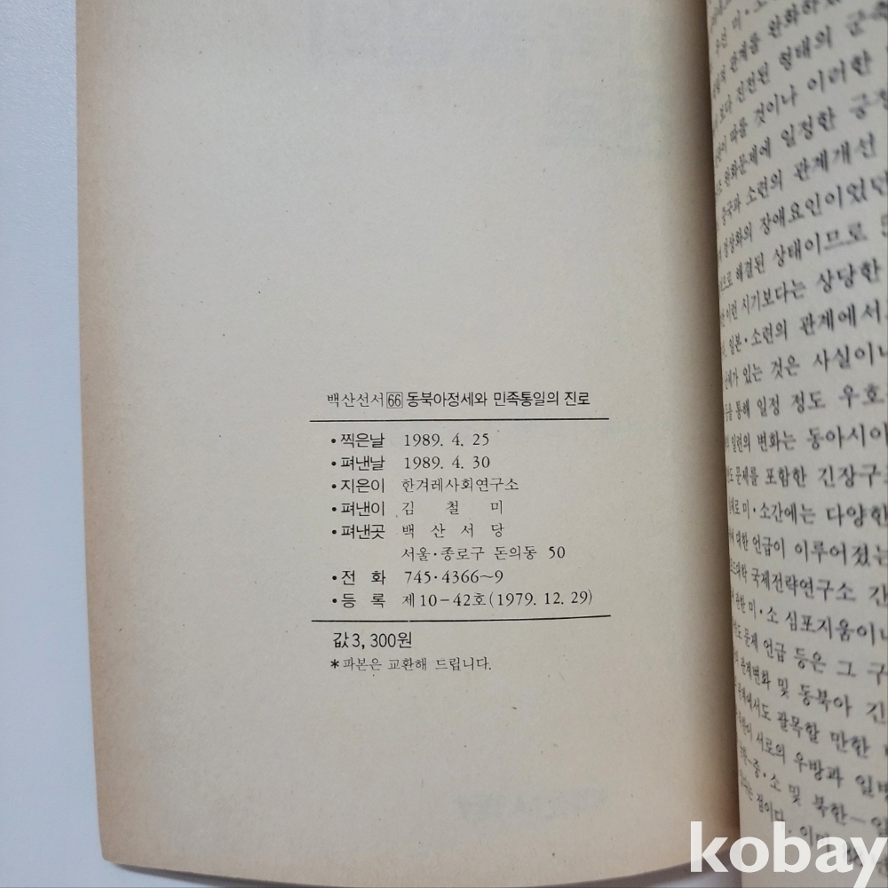 [희귀본] 동북아정세와 민족통일의 진로 ; 1989년 한겨레사화연구소 초판본입니다.