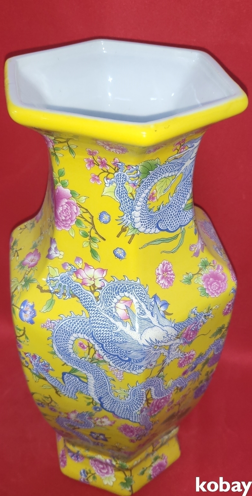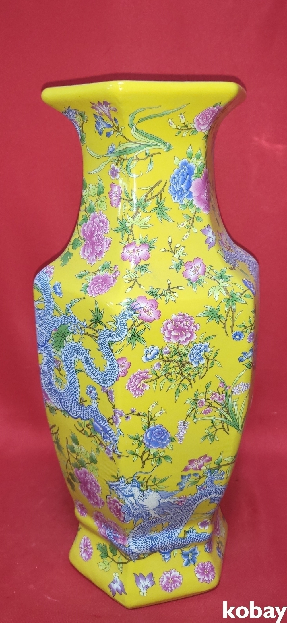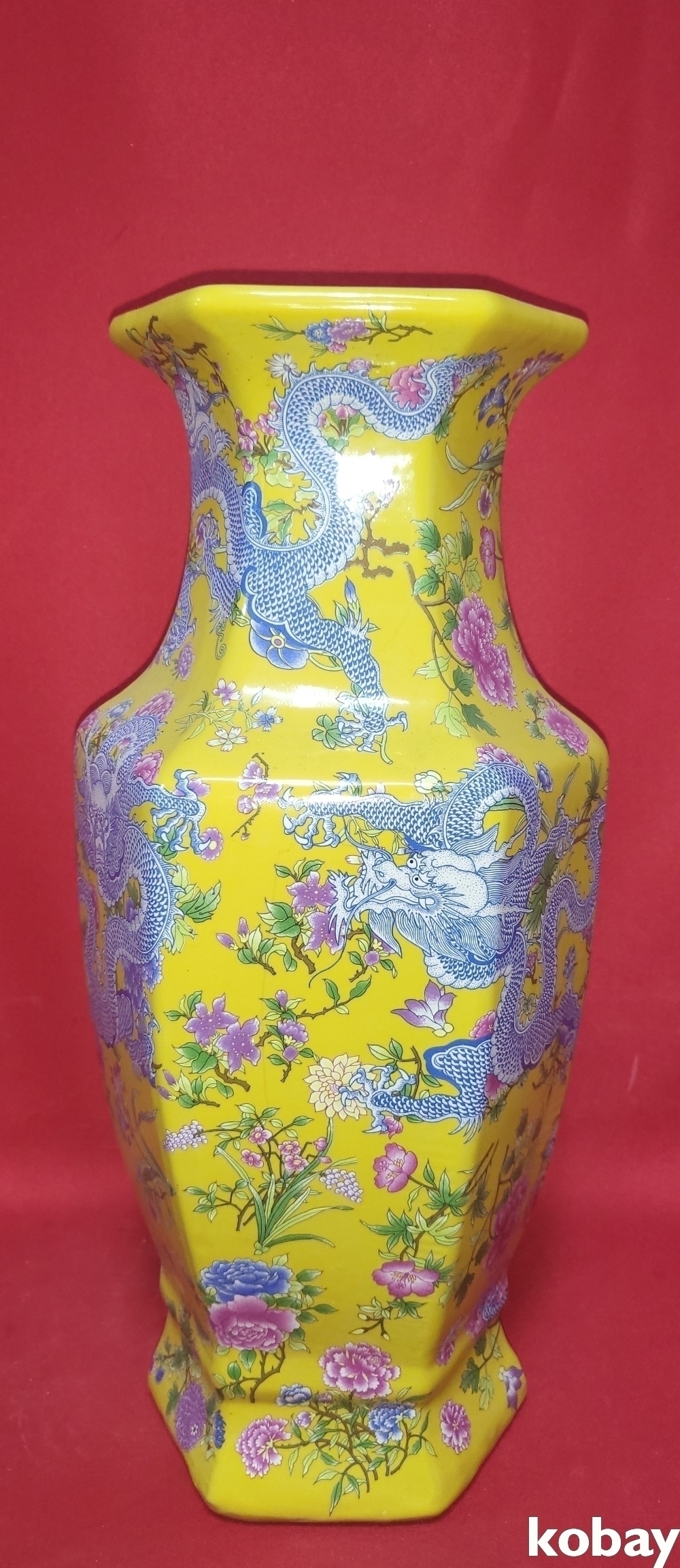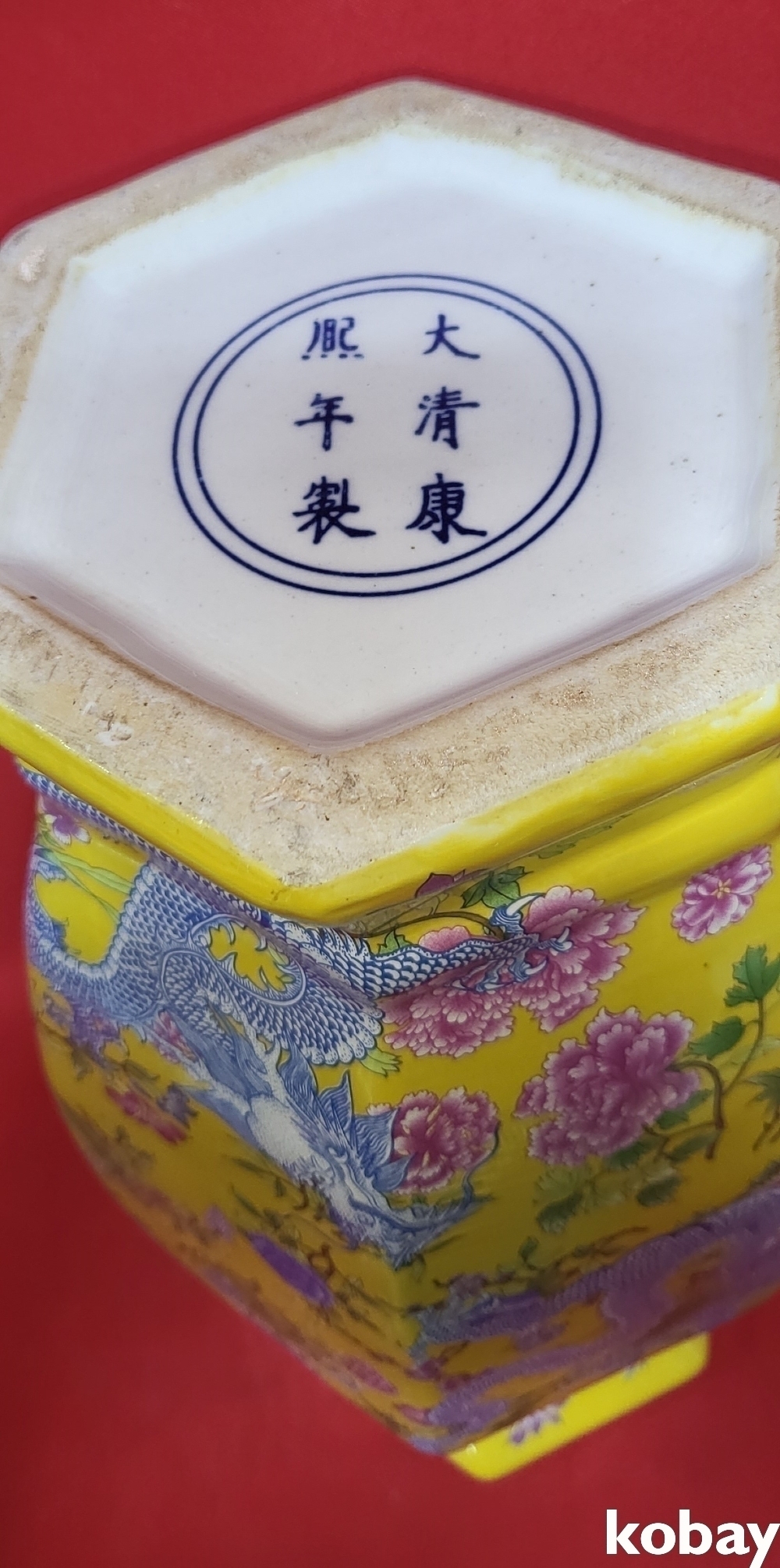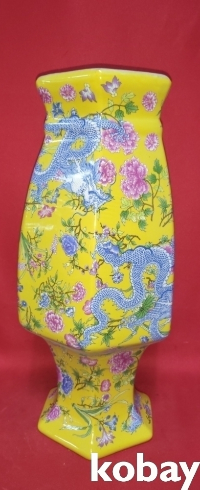 대청강희연제 황지 화용(花龍)문양 6각 광구병입니다,
