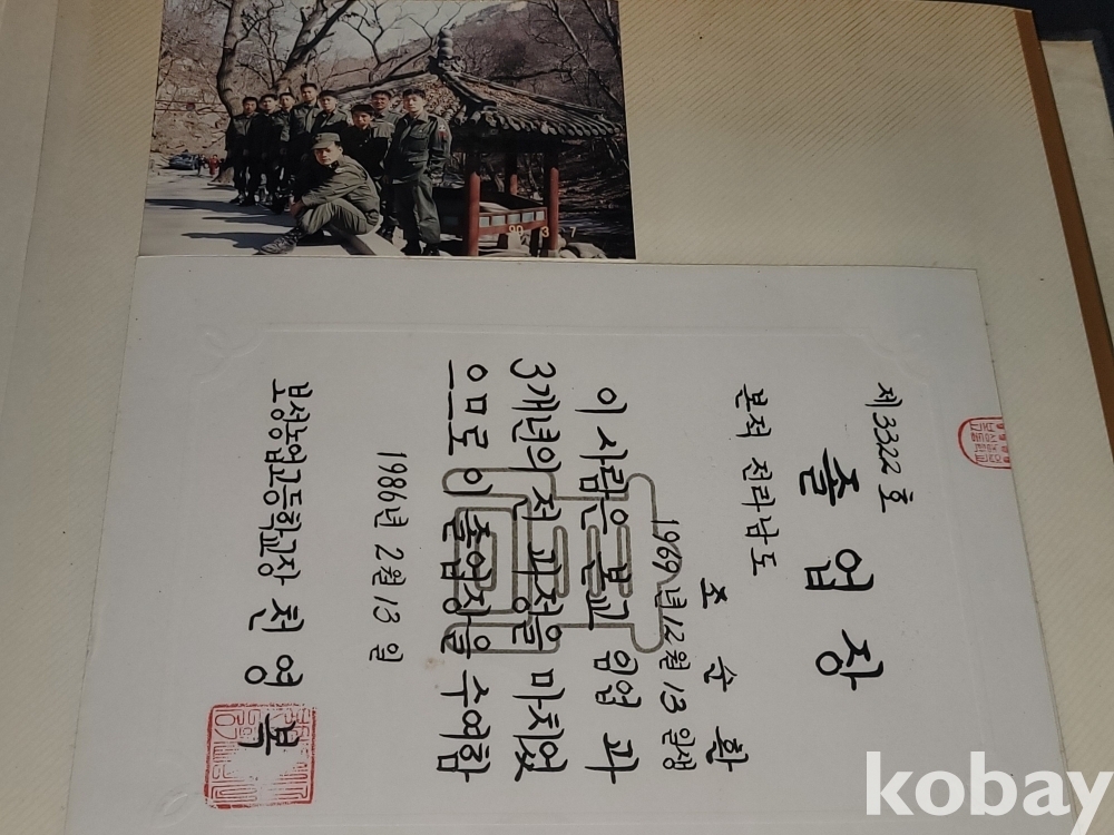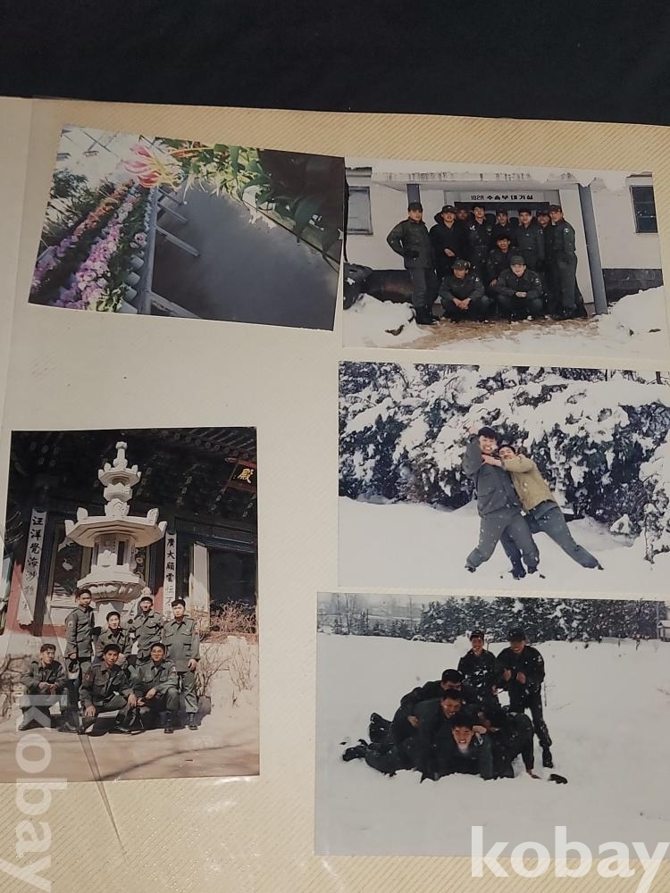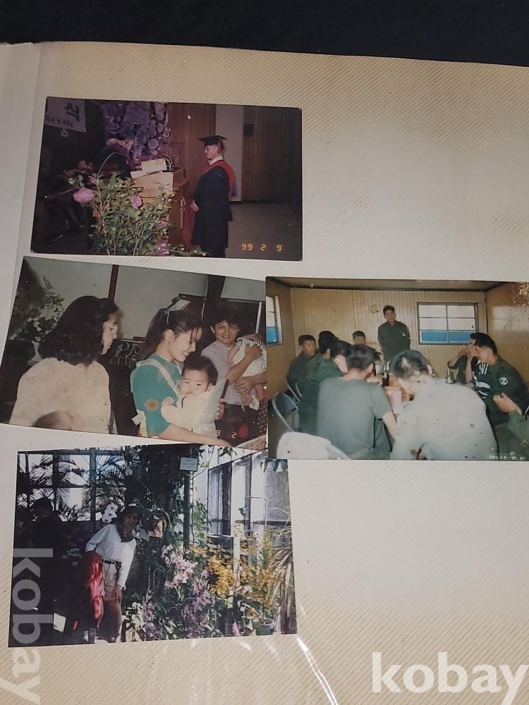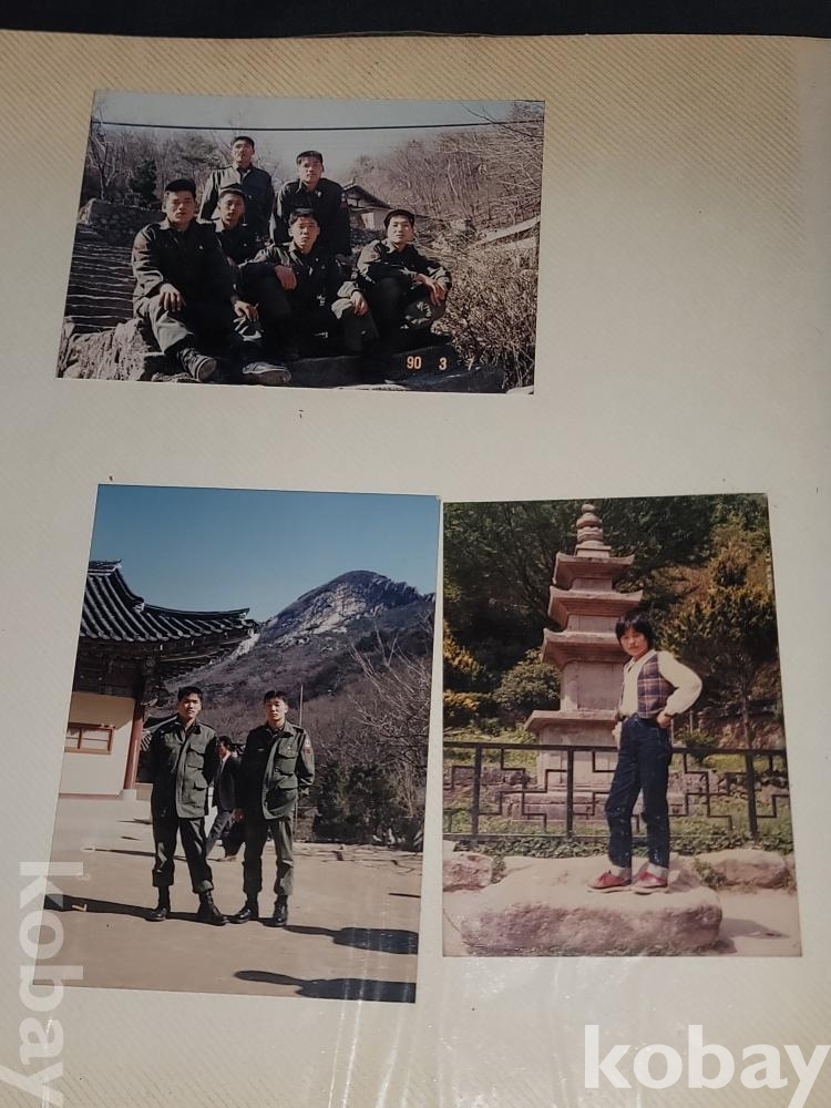 빈티지 군시절 사진, 문화재, 거리, 건물, 버스, 소양강 보트 타는 사진, 80년대 졸업장, 상장 등 각종 사진이 담긴 사진앨범입니다.