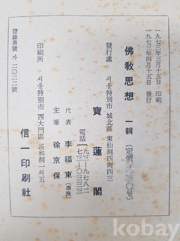 [창간호] 佛敎思想*1973년,보연각, 157p