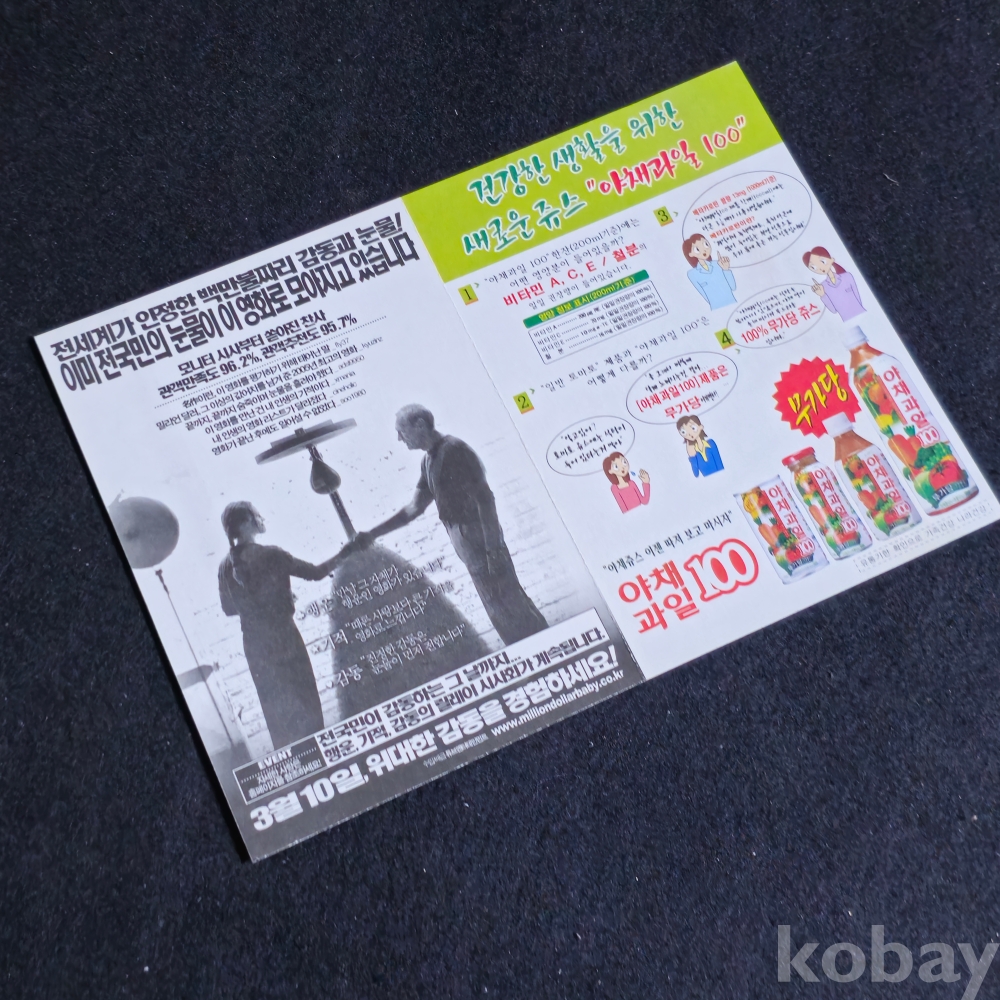 (천원경매)(((영화자료/영화전단/영화카드))) 영화 밀리언달러 베이비 (Million Dollar Baby) 4면카드 (2005)