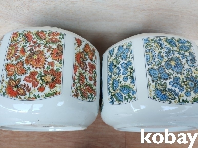 꽃 문양 팔각 도자기 2개 입니다.