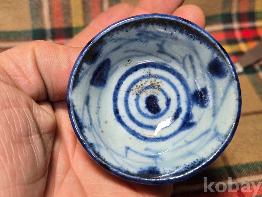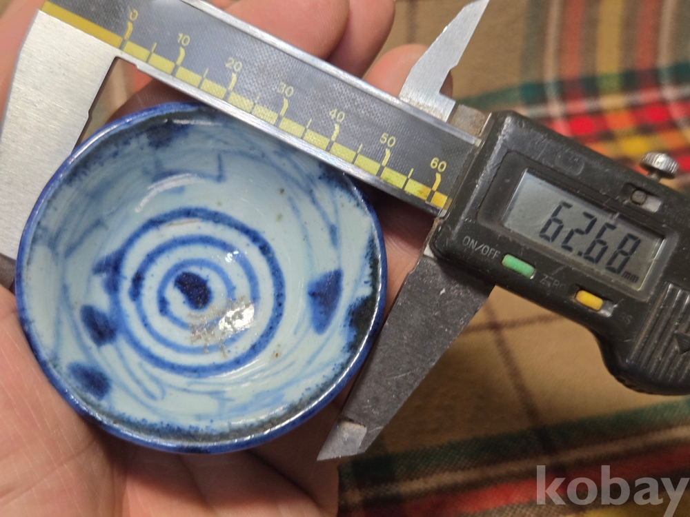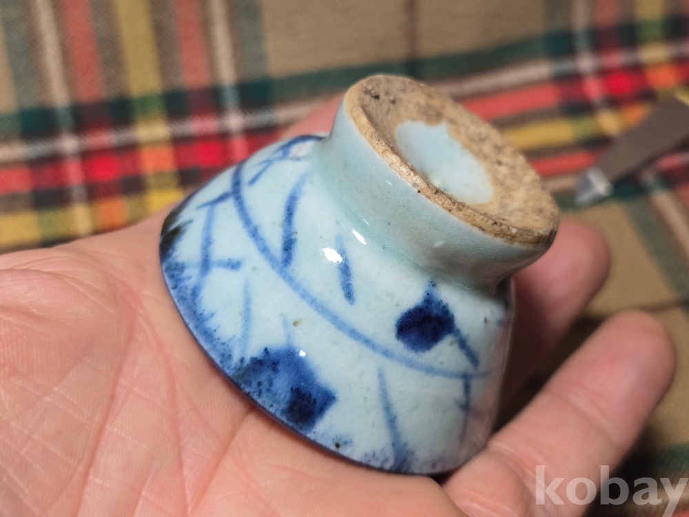 <투킴스> 중국 골동 찻잔, 술잔 - 고청화 초화문 굽높은잔#3