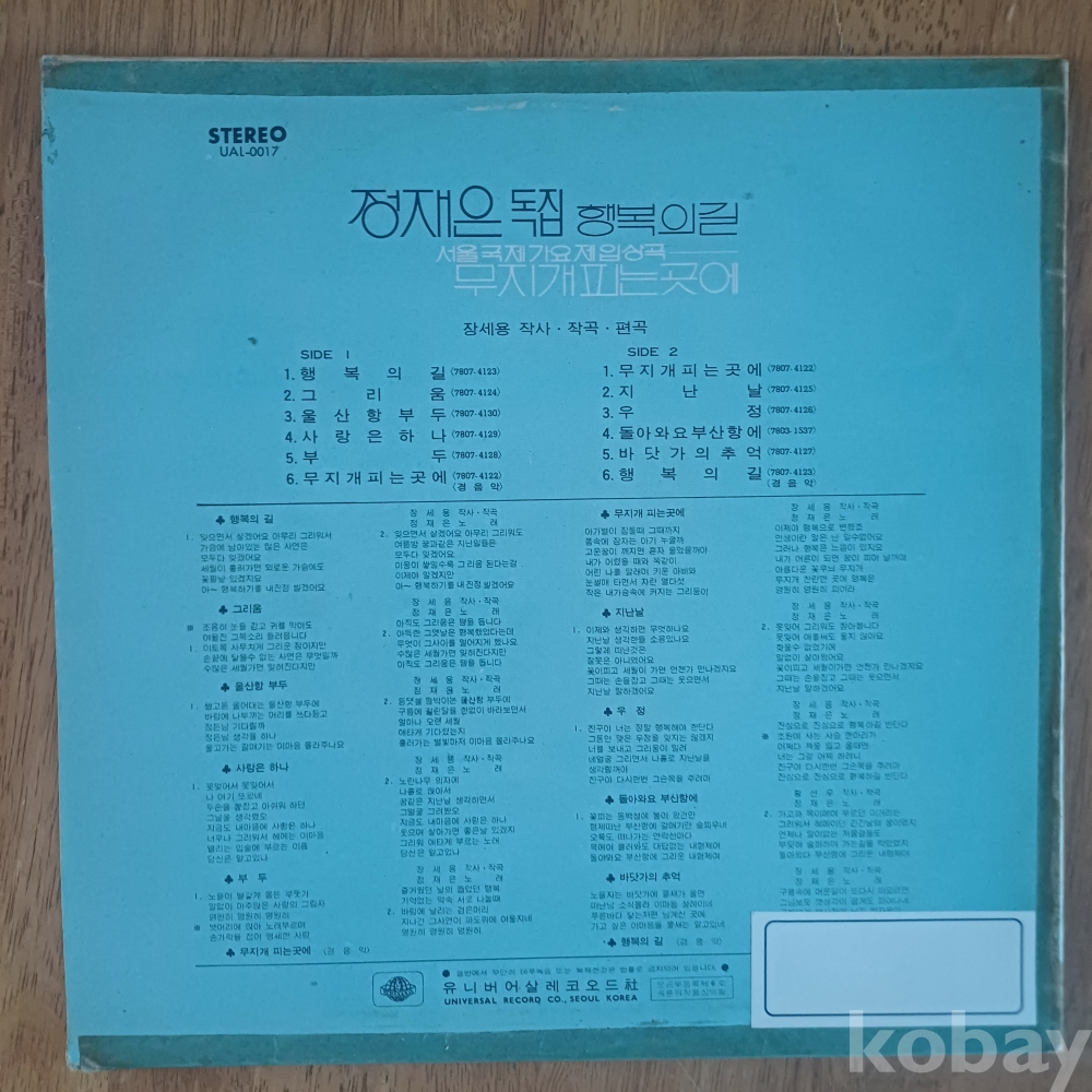 | 자켓상태 | EX : 약간의 마모, 모서리 찢김 존재 | 음반상태 | EX : 재생에 영향 없는 가벼운 기스 존재 | 발매정보 | 초반 | 가사지여부 | 무 |