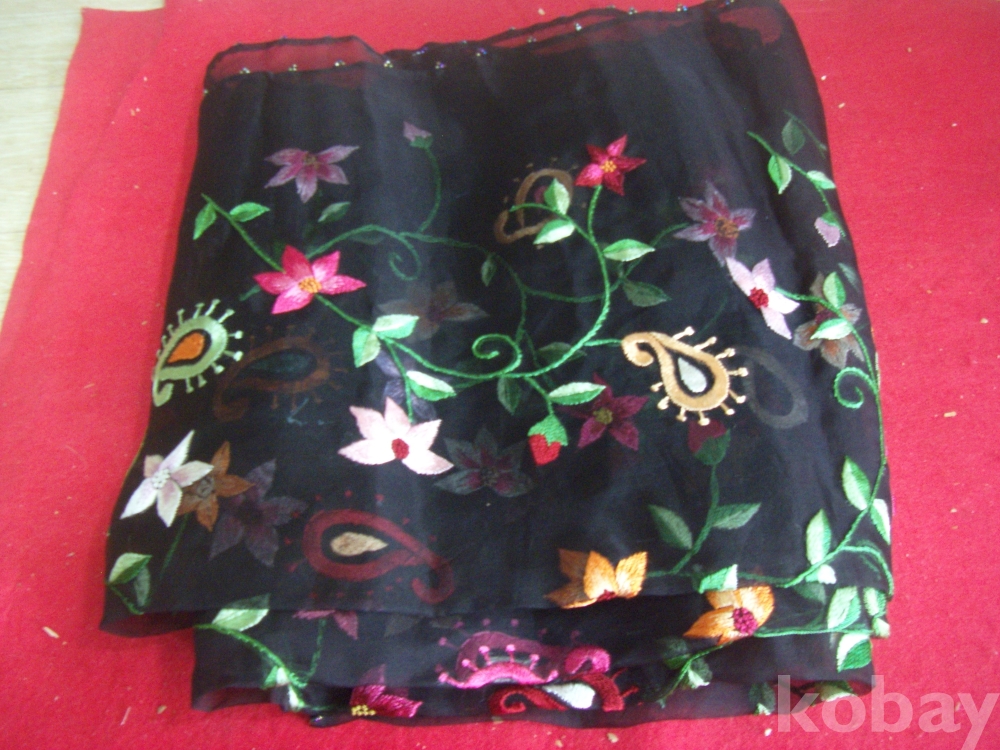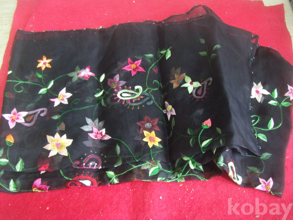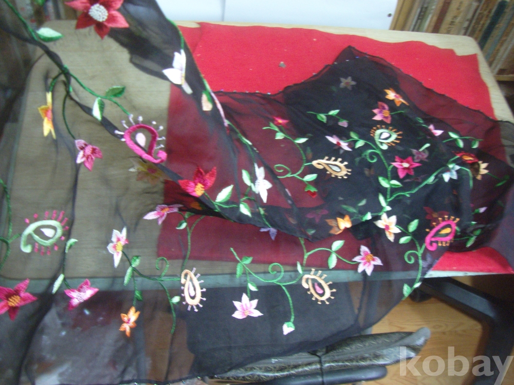 검정 반투명에 꽃자수가 있는 여성 어깨 숄