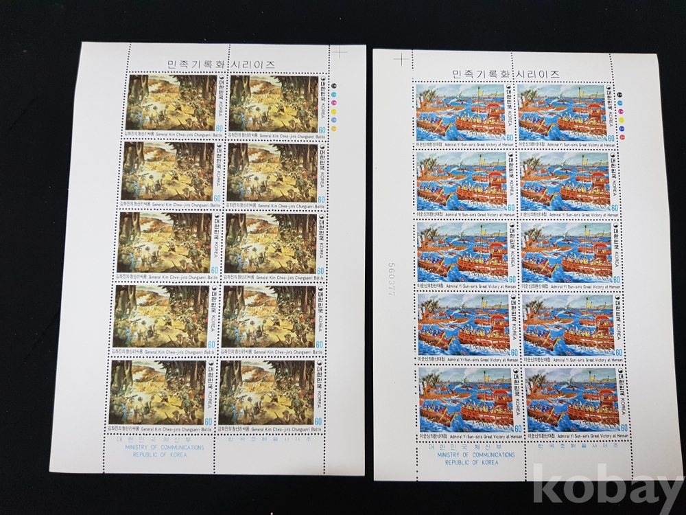 - 미사용 1982년 민족기록화시리즈 - 제 3집 전지 2종 모음