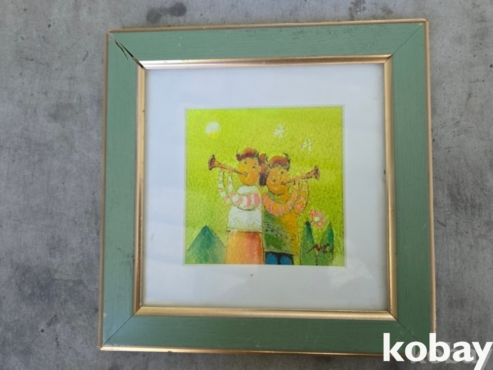 나팔 부는 아이들 표현 유화 액자 입니다.