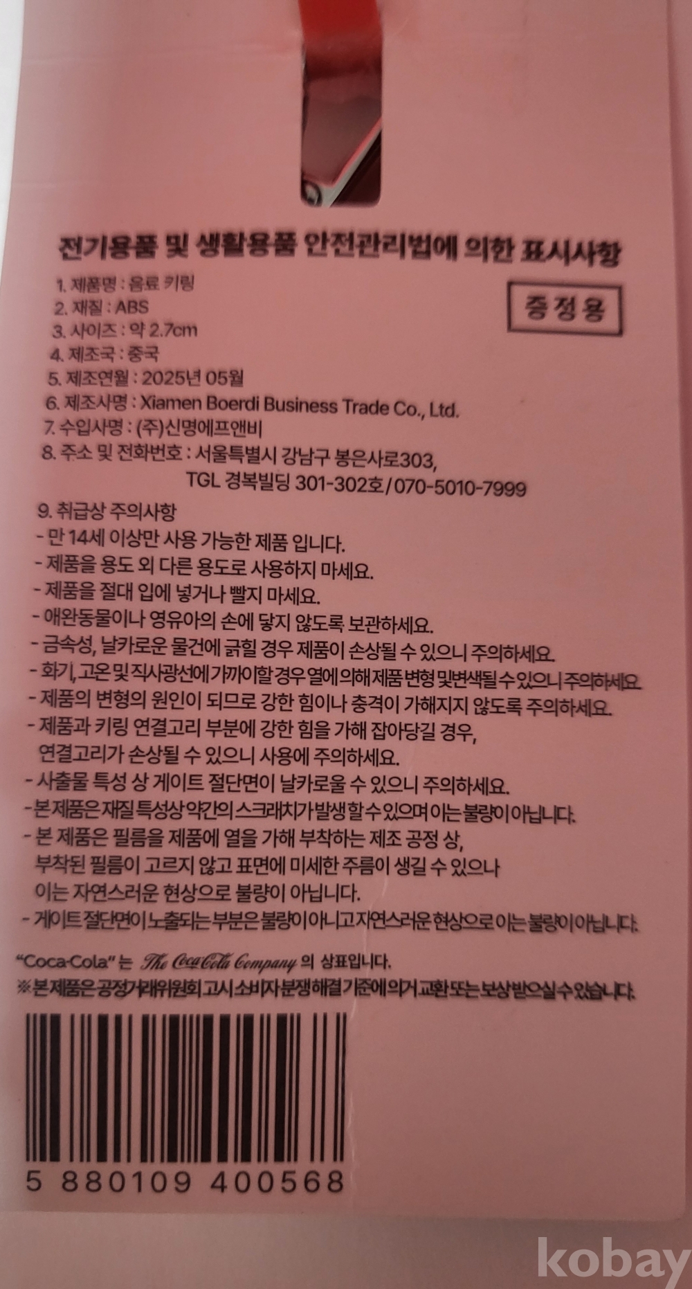 Tㅡ호 열 下 번 ///// 코카콜라 미사용 장식품입니다,