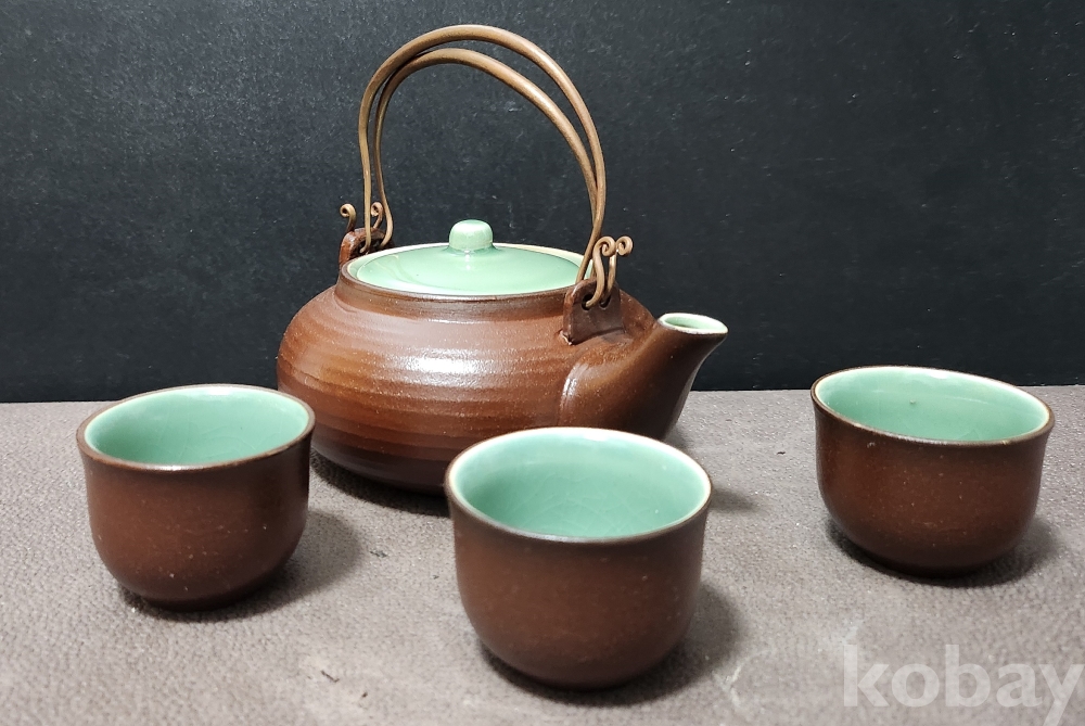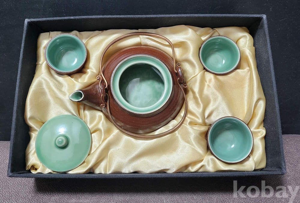청자다기 [靑磁茶器] < 미사용 박스 완비 작품 >