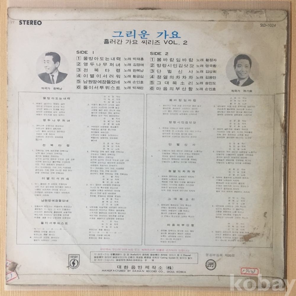 . 가요음반 대부분은 휘어짐이나 손상을 방지하기 위해 무지싱글자킷을 하나 더 사용하여 보관되었던 음반들입니다.