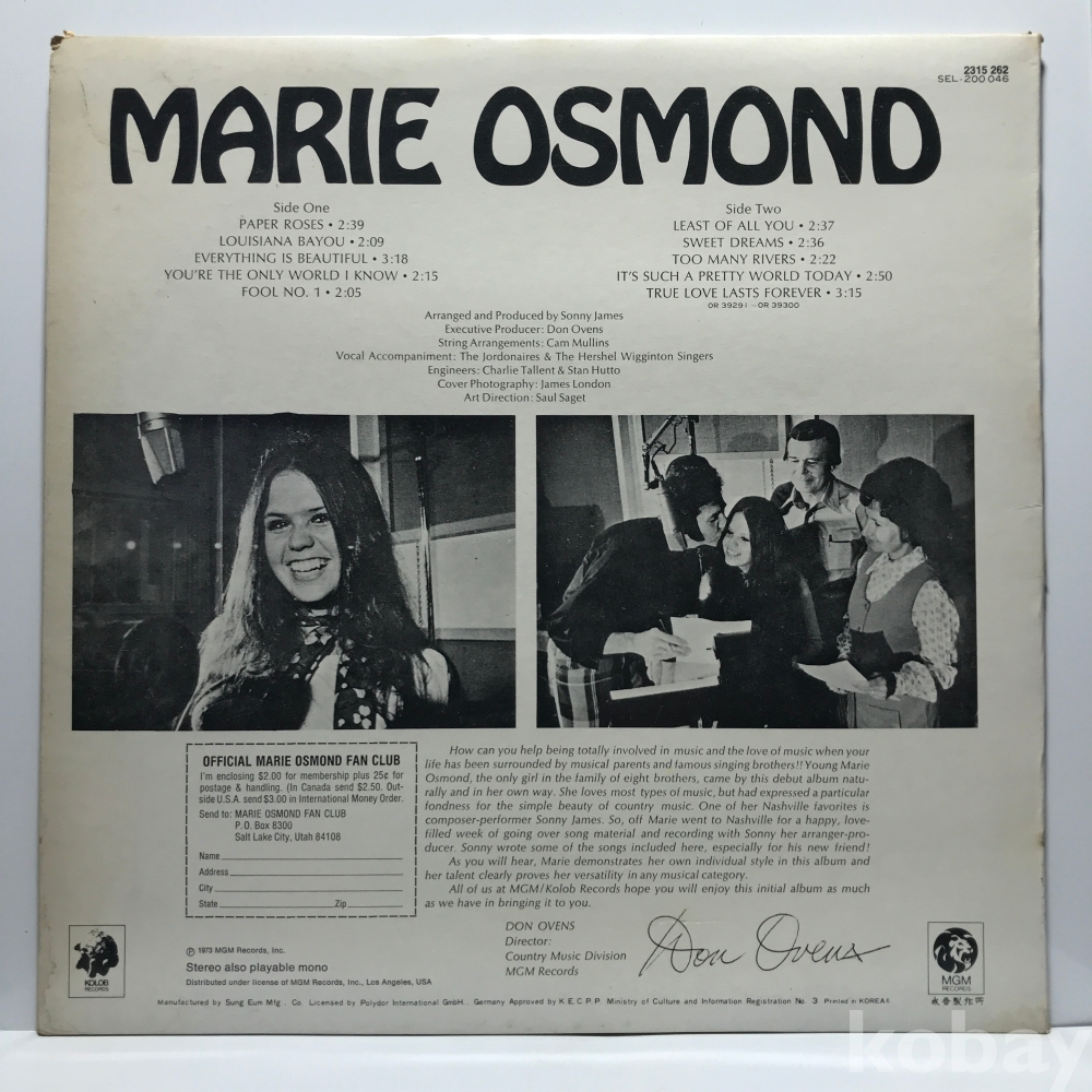 LP 17,000-57 MARIE OSMOND 74 성음 자켓 EX 알판 EX