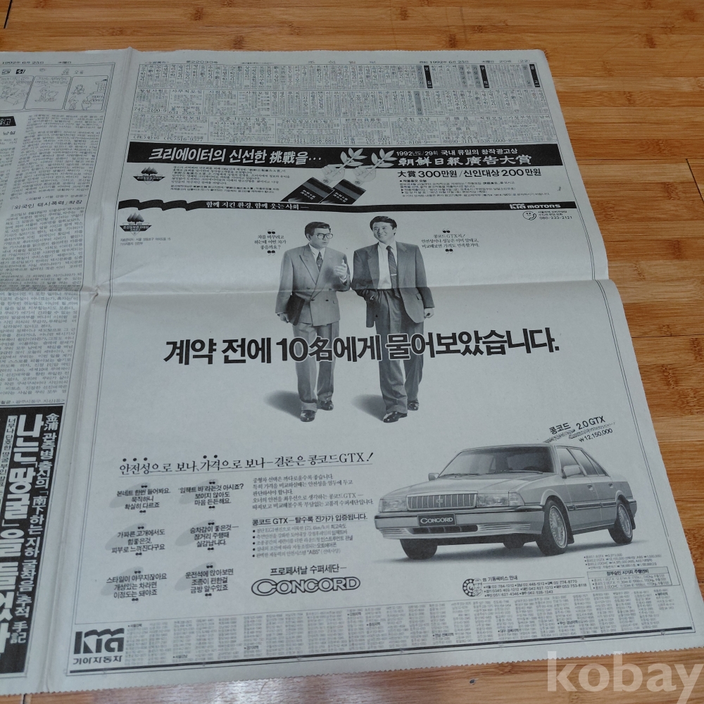 기아자동차 콩코드 승용차 광고 조선일보 92년6월25일 올려드립니다