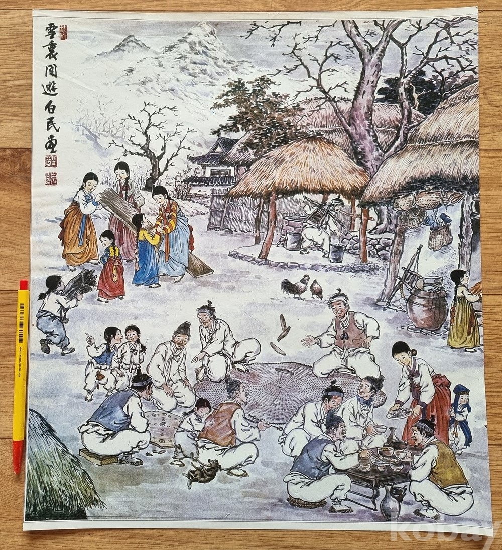 K-23 / 풍속화 (한국 전통적인 농촌 마을의 평화로운 일상을 담은 풍속) 영인