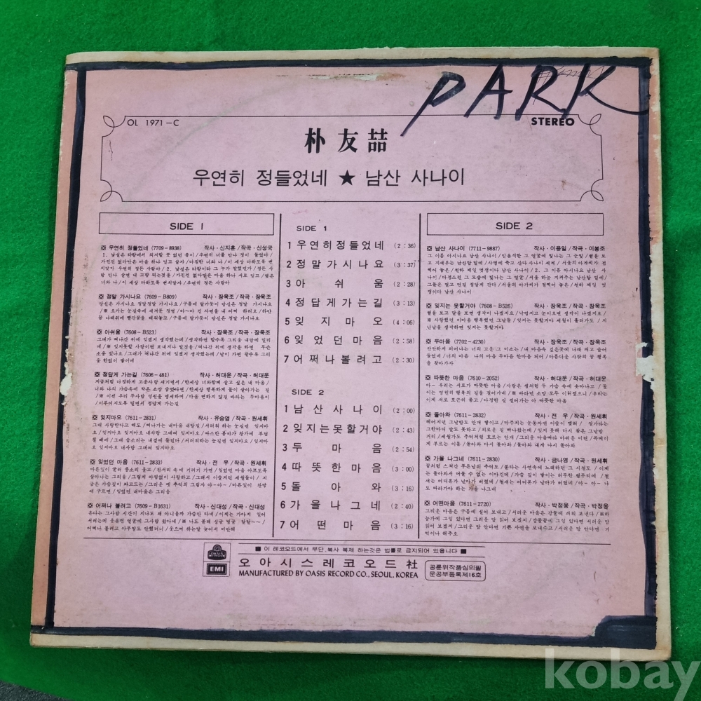 | 자켓상태 | VG : 주름, 접힘, 모서리 찢김 다수 | 음반상태 | EX : 재생에 영향 없는 가벼운 기스 존재 | 발매정보 | 알수없음 | 가사지여부 | 유 |