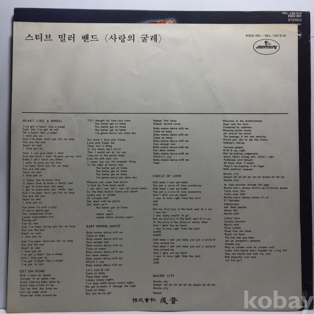 LP 350-97 Steve Miller Band 자켓 EX+ 알판 EX+ 82 년 국내반