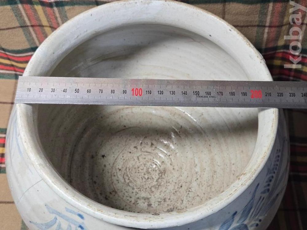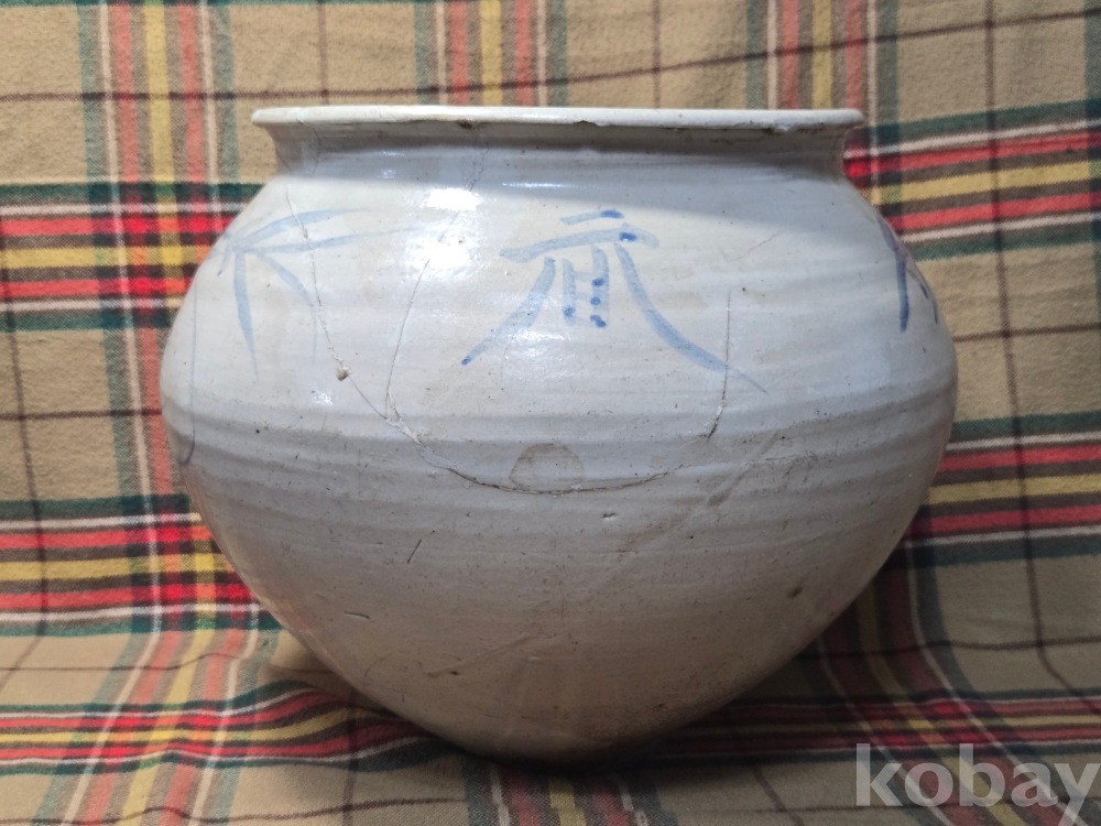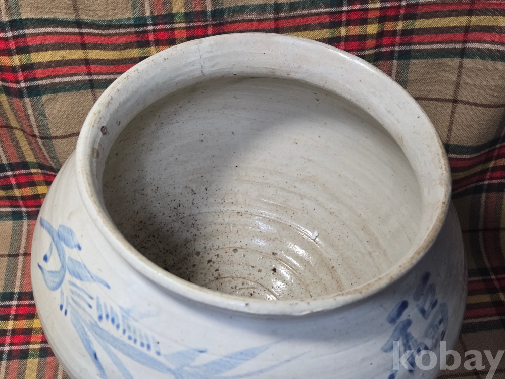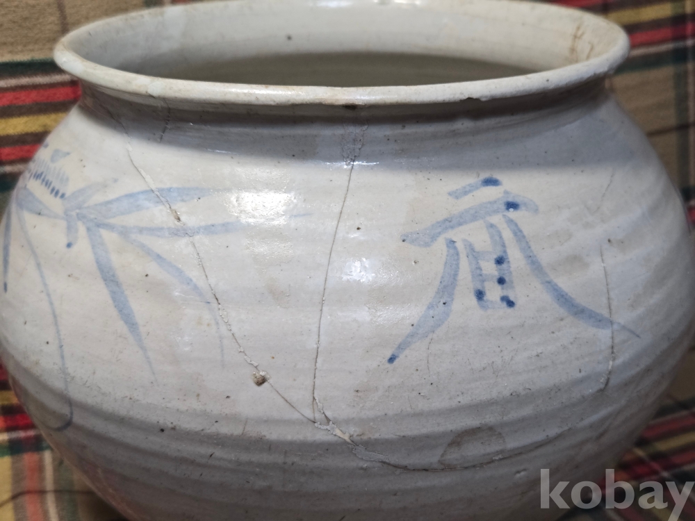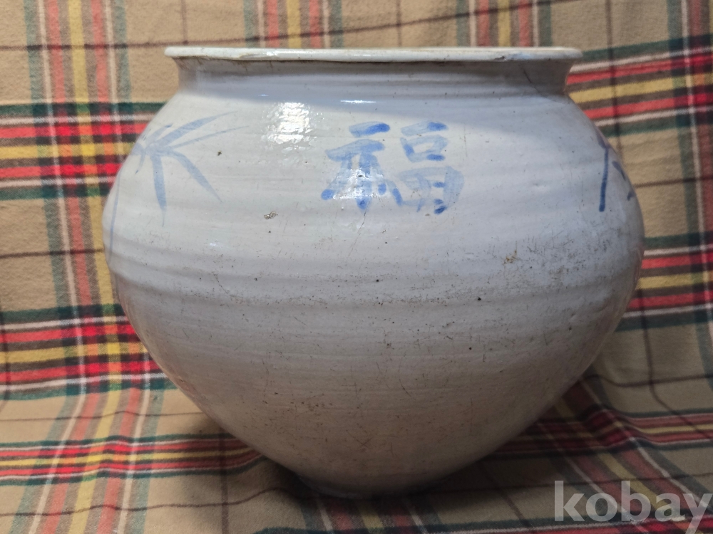 한문 시문이새겨진 귀한형태의 말기 지방가마 청화백자항아리로 안목있으신분들 적극 관심 부탁합니다.
