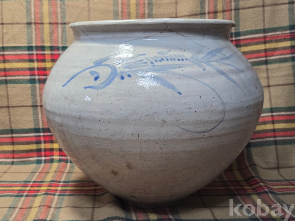 하단의 변색부위는 장작가마에서 화기를 입은것으로 수리되지 않았습니다.