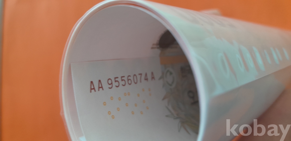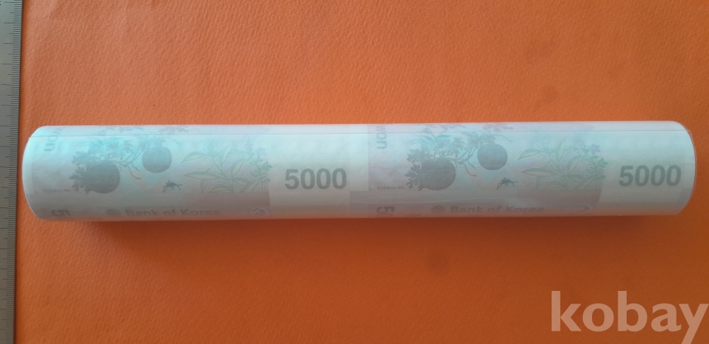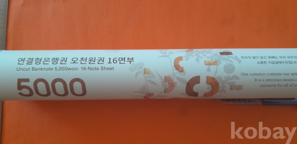 2021년 전지은행권 오천원권 16면부 AA 9556074 A 부터 AA 9556090 A 까지 입니다.