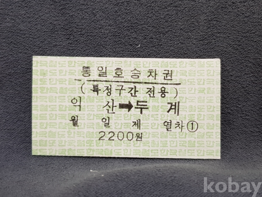 - 미사용 통일호 승차권(특정구간전용) " 익산 ▶ 두계 " 2200원