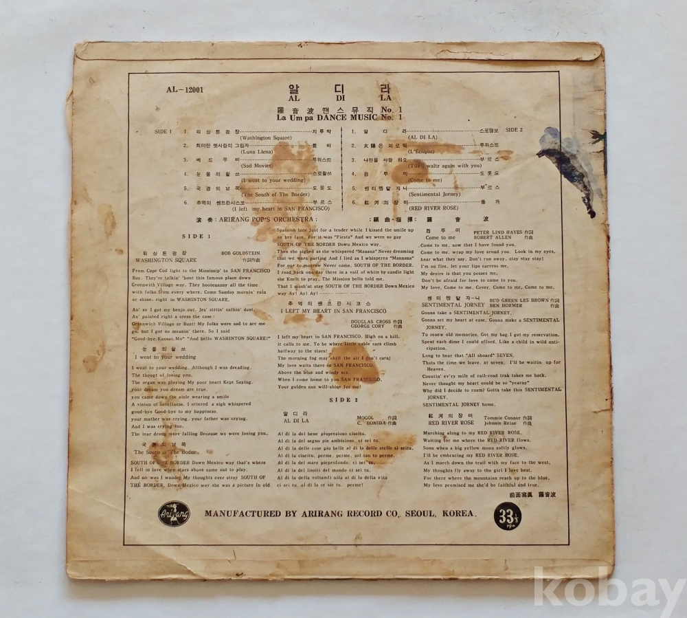 | 자켓상태 | EX : 약간의 마모, 모서리 찢김 존재 | 음반상태 | EX : 재생에 영향 없는 가벼운 기스 존재 | 발매정보 | 알수없음 | 가사지여부 | 무 |