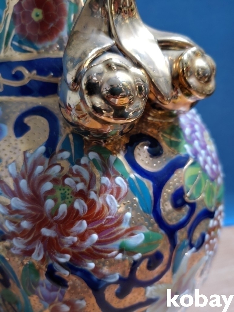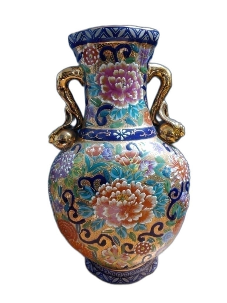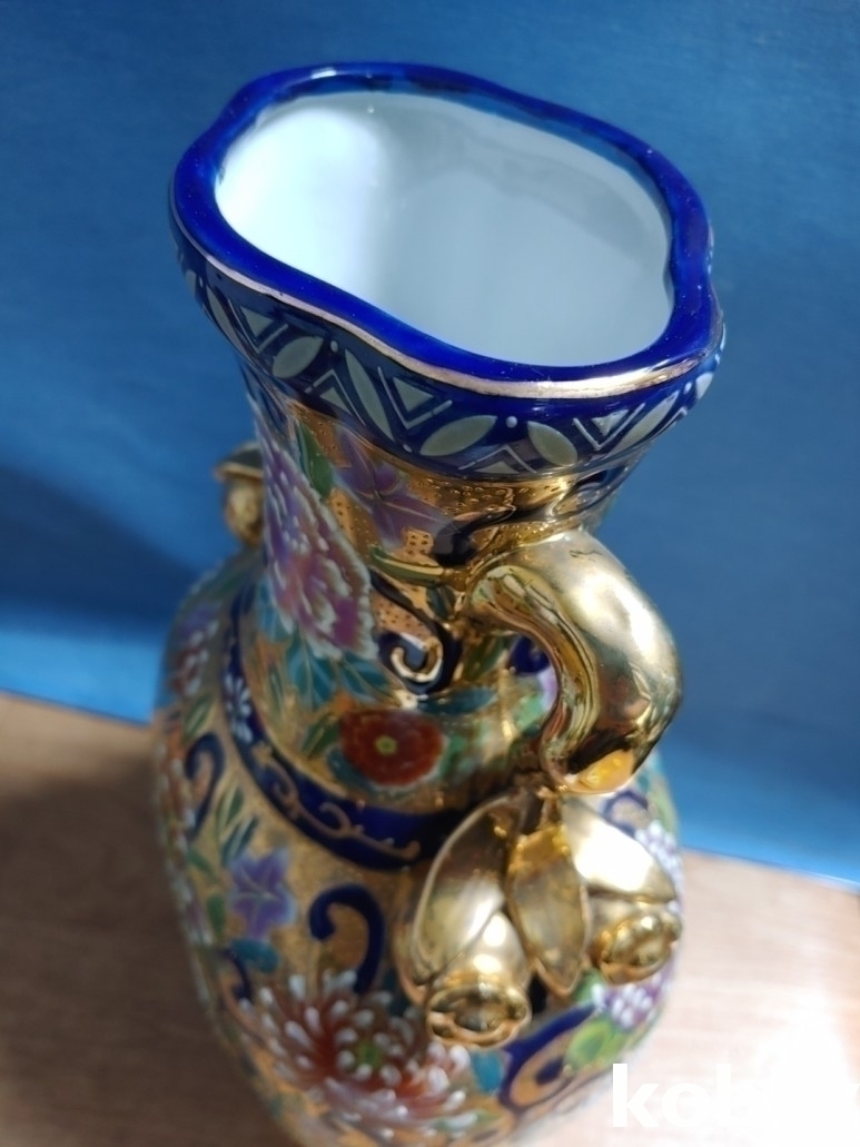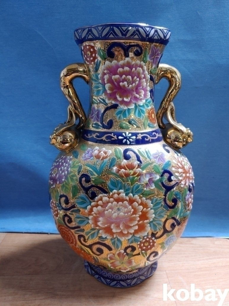 화려한 꽃 문양이 있는 양이 도자기 입니다.