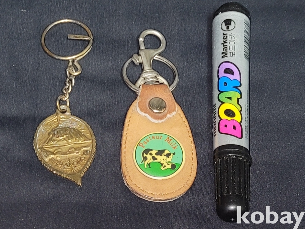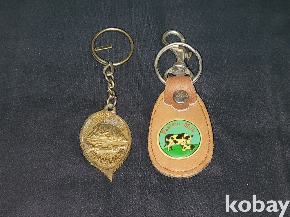 빈티지 1975년 한국산악회에서 기념으로 만든 북한산 인수봉 통일 서원 키링과 파스퇴르 우유 키링입니다.