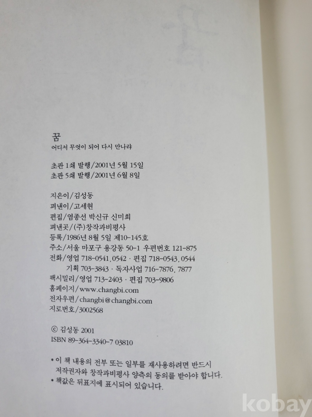 1. 꿈-어디서 무엇이 되어 다시 만나랴, 김성동, 창작과비평사, 2001년, 35쪽, 상태 상, 사진 참조