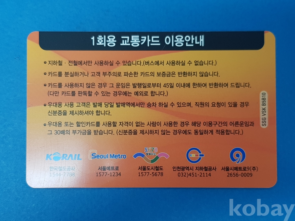 **** 1회용 교통카드/지하철·전철전용/한국철도공사