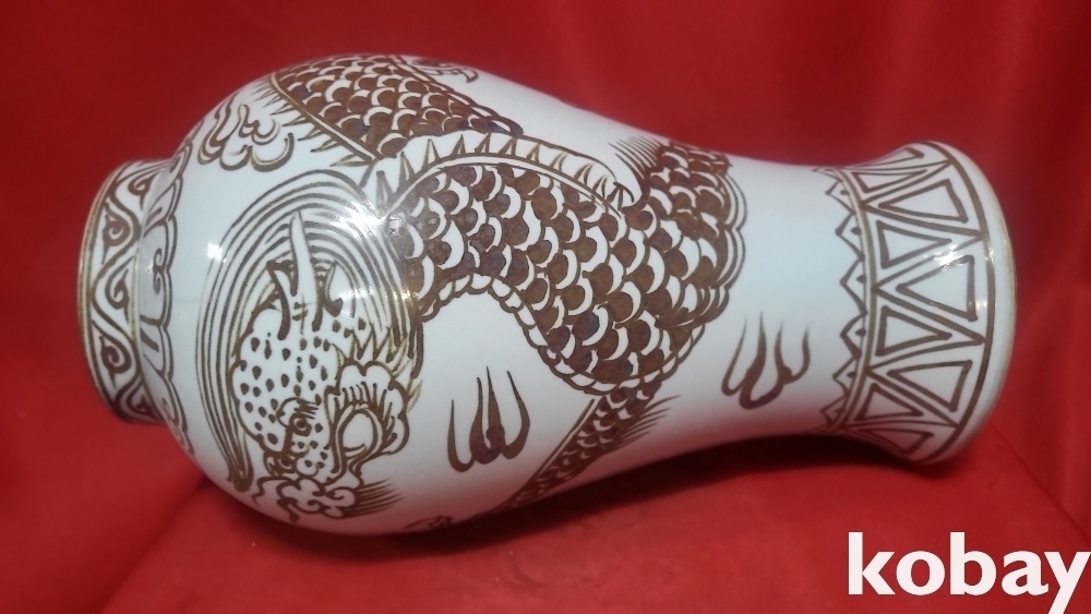 기물 전체에 구름과 용이 시문된 기물입니다,