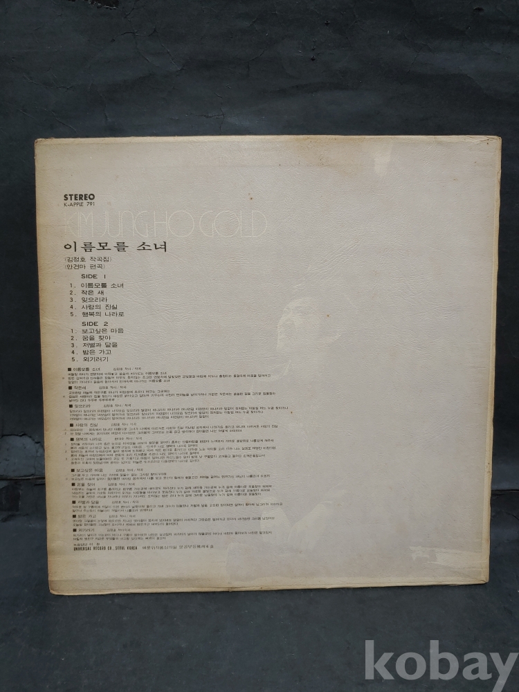 | 자켓상태 | EX : 약간의 마모, 모서리 찢김 존재 | 음반상태 | VG : 생활 기스 다수, 가벼운 노이즈 존재 | 발매정보 | 알수없음 | 가사지여부 | 무 |