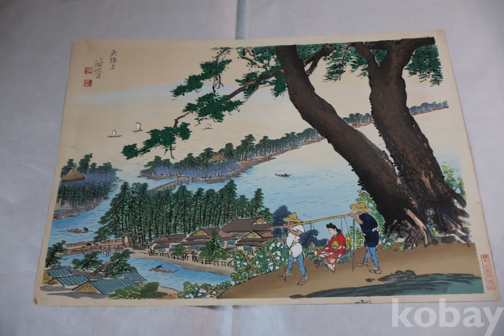 일본 여인과 풍경 /목판화 원본//128sandisk109//9544