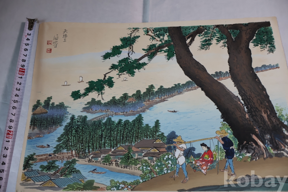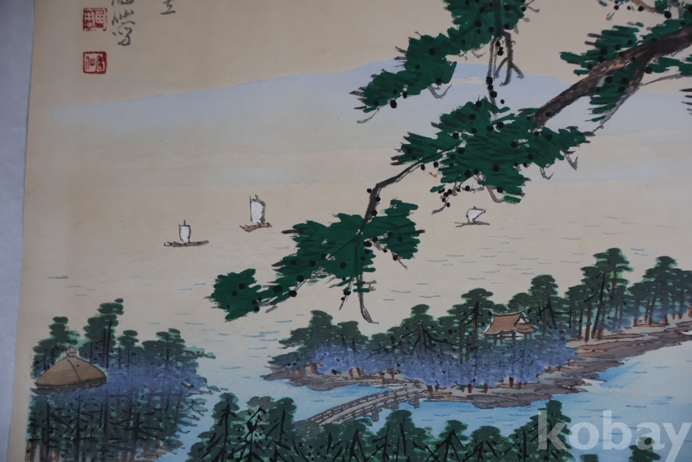 일본 여인 과  멋진 바다의 모습 등등 아름다운 명화 임니다 화가의 이름의 낙관 보임니다 .