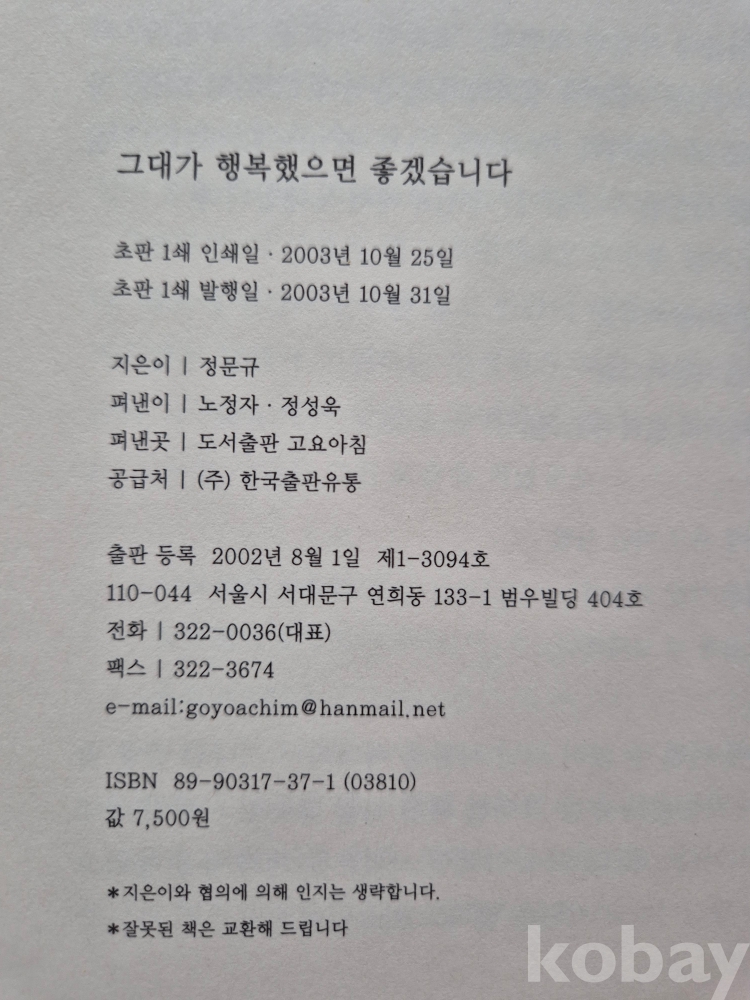 2003년 발간한 첫 시집 『그대가 행복했으면 좋겠습니다』