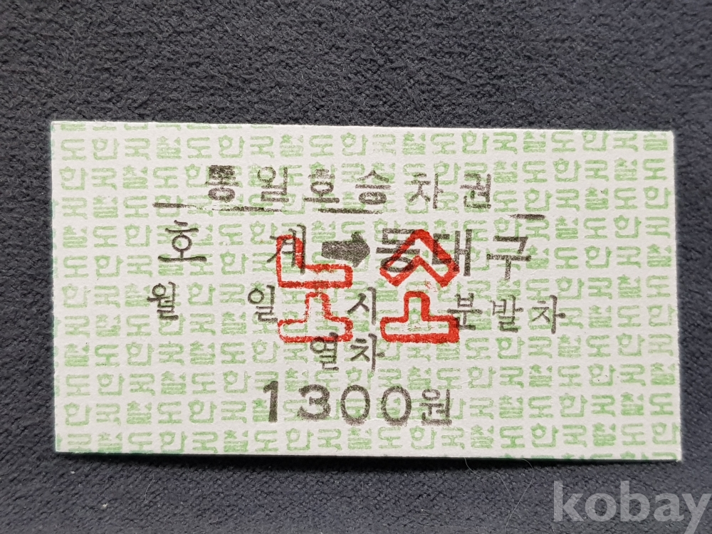 - 미사용 통일호 승차권 노소 " 호계 ▶ 동대구 " 1300원