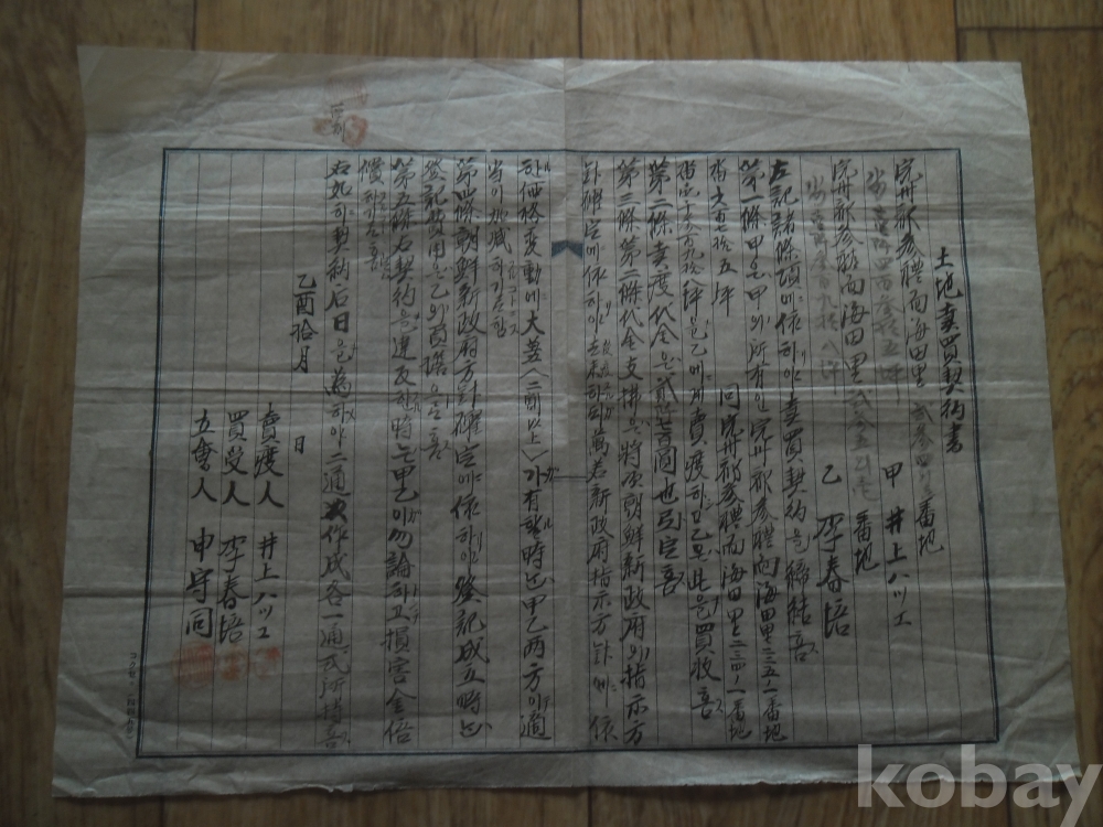 을유년 필사 토지매매계약서