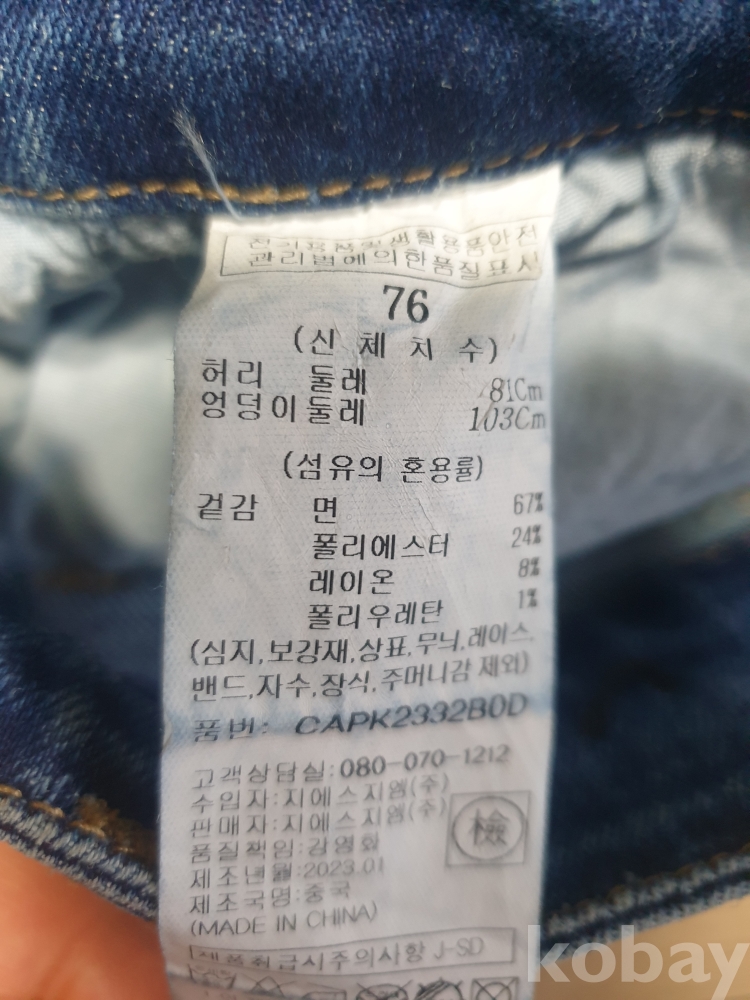 [천원경매] 1-333 와이드핏 청바지(상태 양호하나 미세한 오염있음, 허리단면 39cm, 길이 102cm)