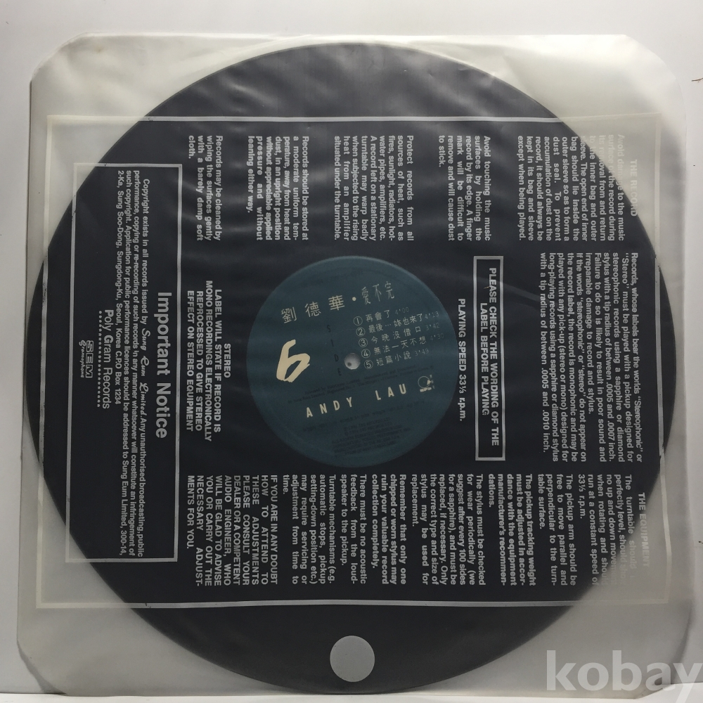 LP 350-91 유덕화 - 끝없는 사랑 자켓 EX 알판 EX 91 년 국내반