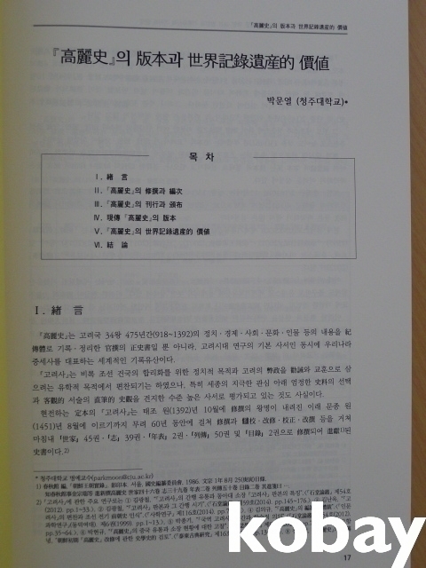 특히 박문열교수의 논고는 100쪽이 넘을 뿐 아니라 『고려사』를 서지학적으로 분석한 최고의 논고이며 자료이다