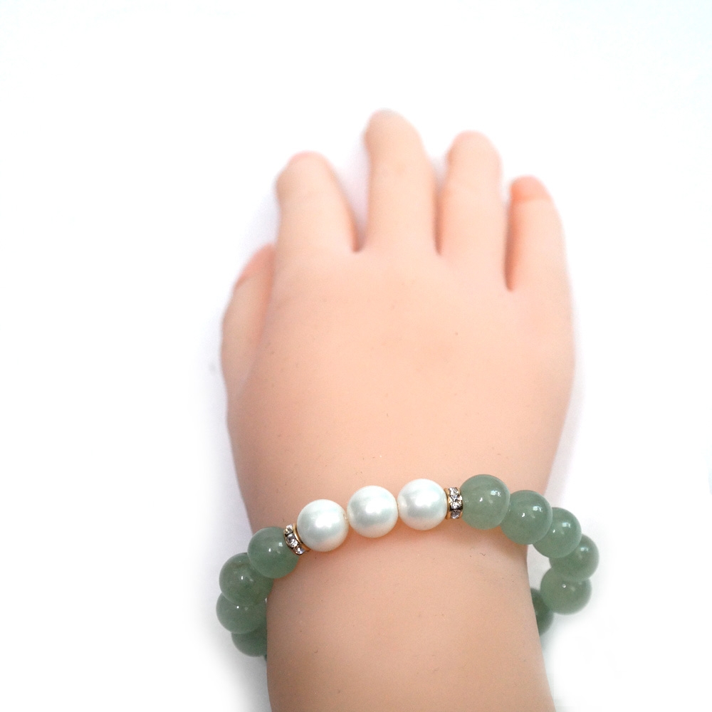 핵진주가3개 달려있는 옥으로 만들어진 팔찌입니다.