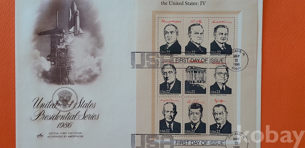 1986년 발행 미국 대통령시리즈 -4(1921년-1969년) 대형 초일봉피 입니다.