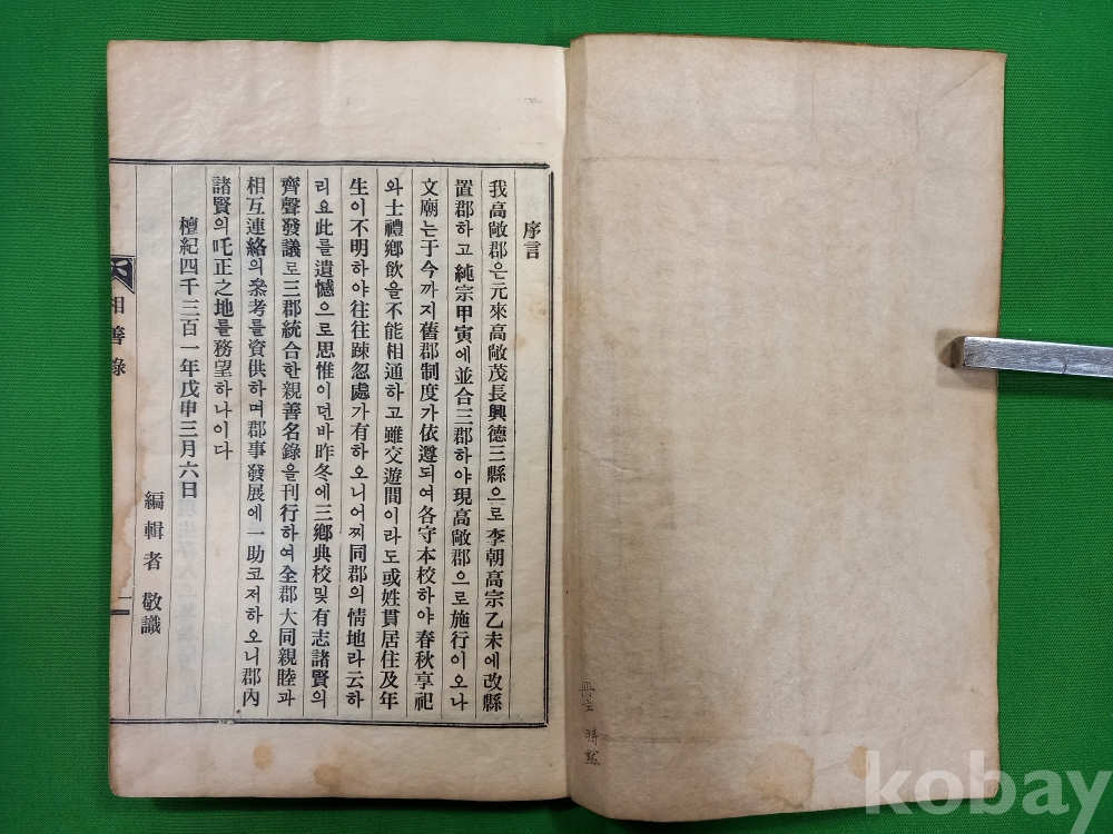 표지 좌측 상단 하단 뜯김 있으며 얼룩 및 세월의 흔적 있습니다